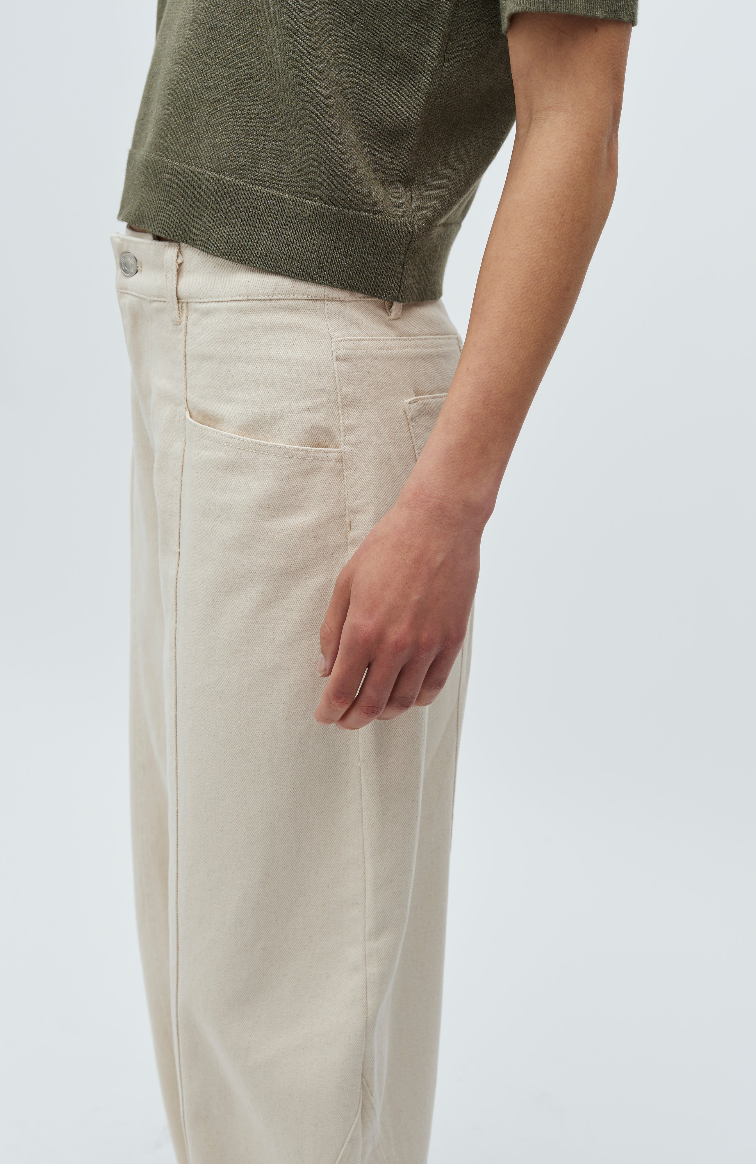 - Geschwungene, voluminöse Beine mit lockerer Passform um Hüften und Oberschenkel