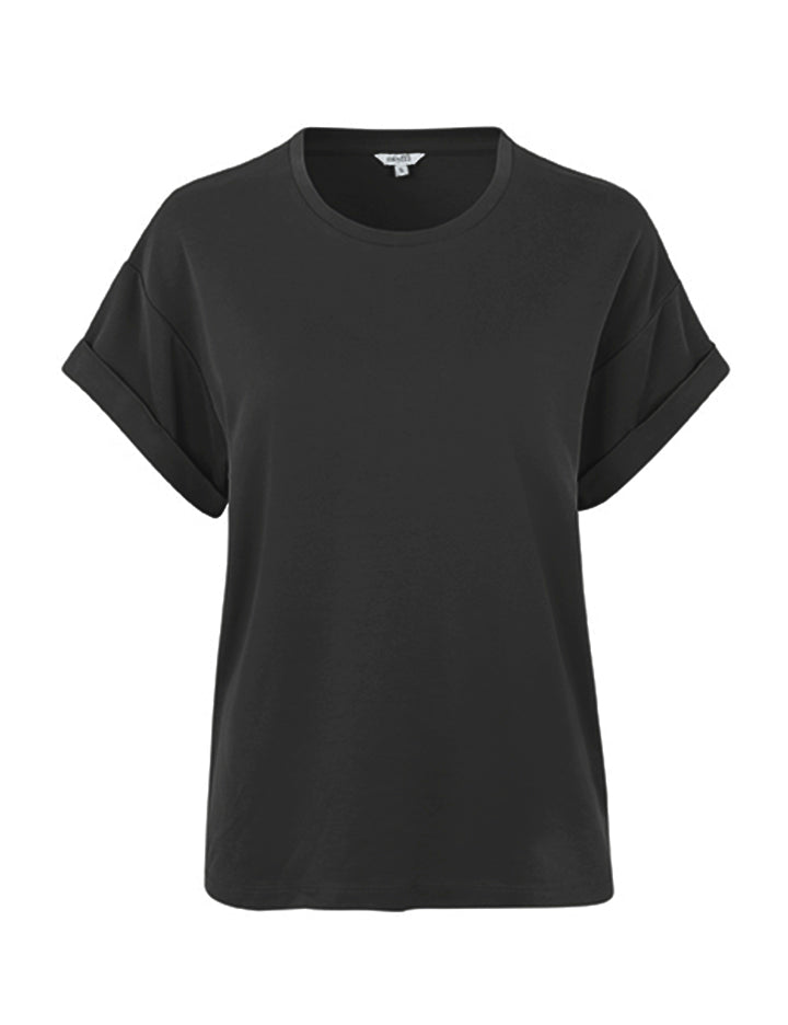 Übergroßes T-Shirt mit hochgekrempelten Ärmeln.