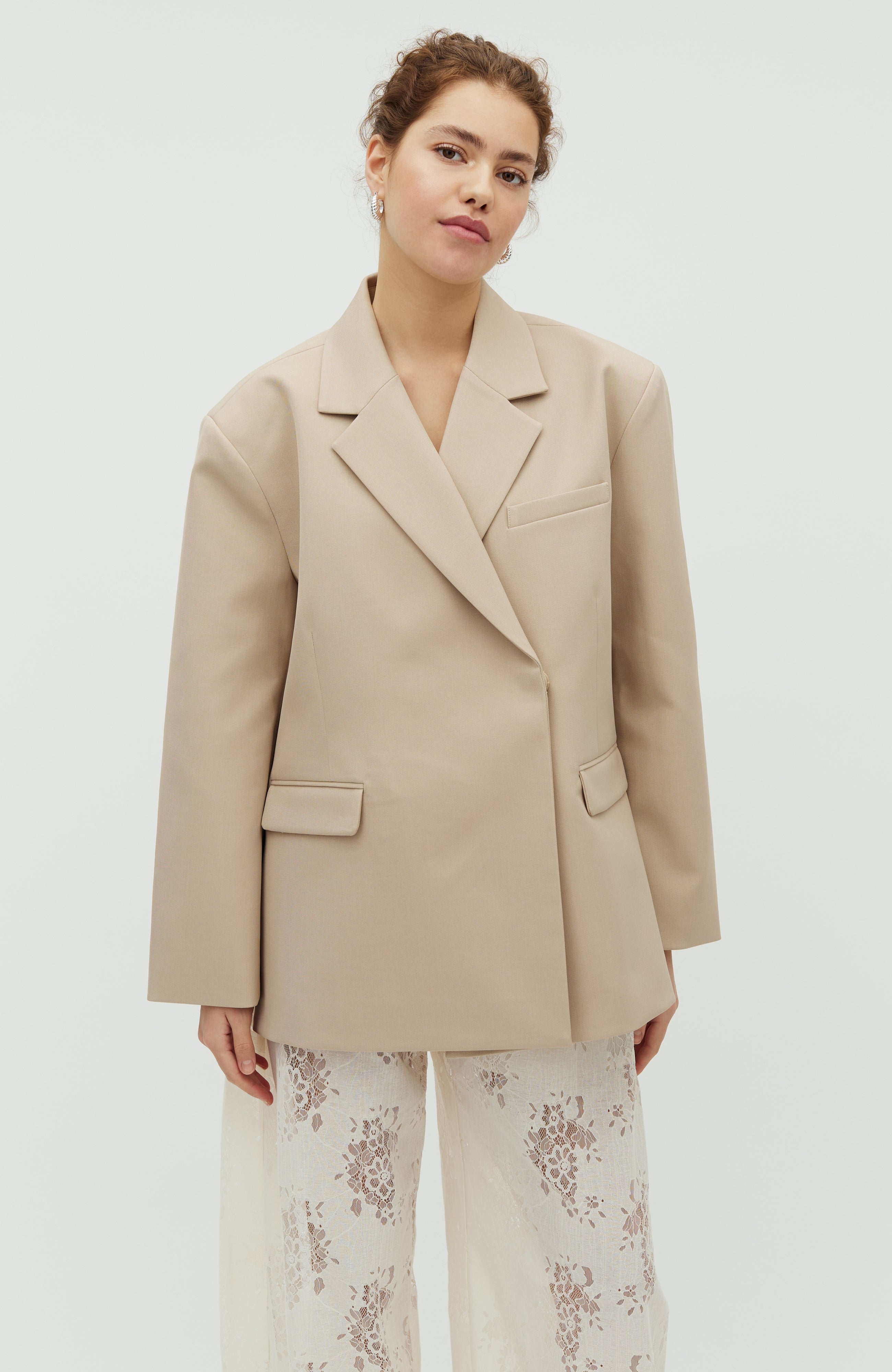 Oversize-Blazer mit schrägem Verschluss.