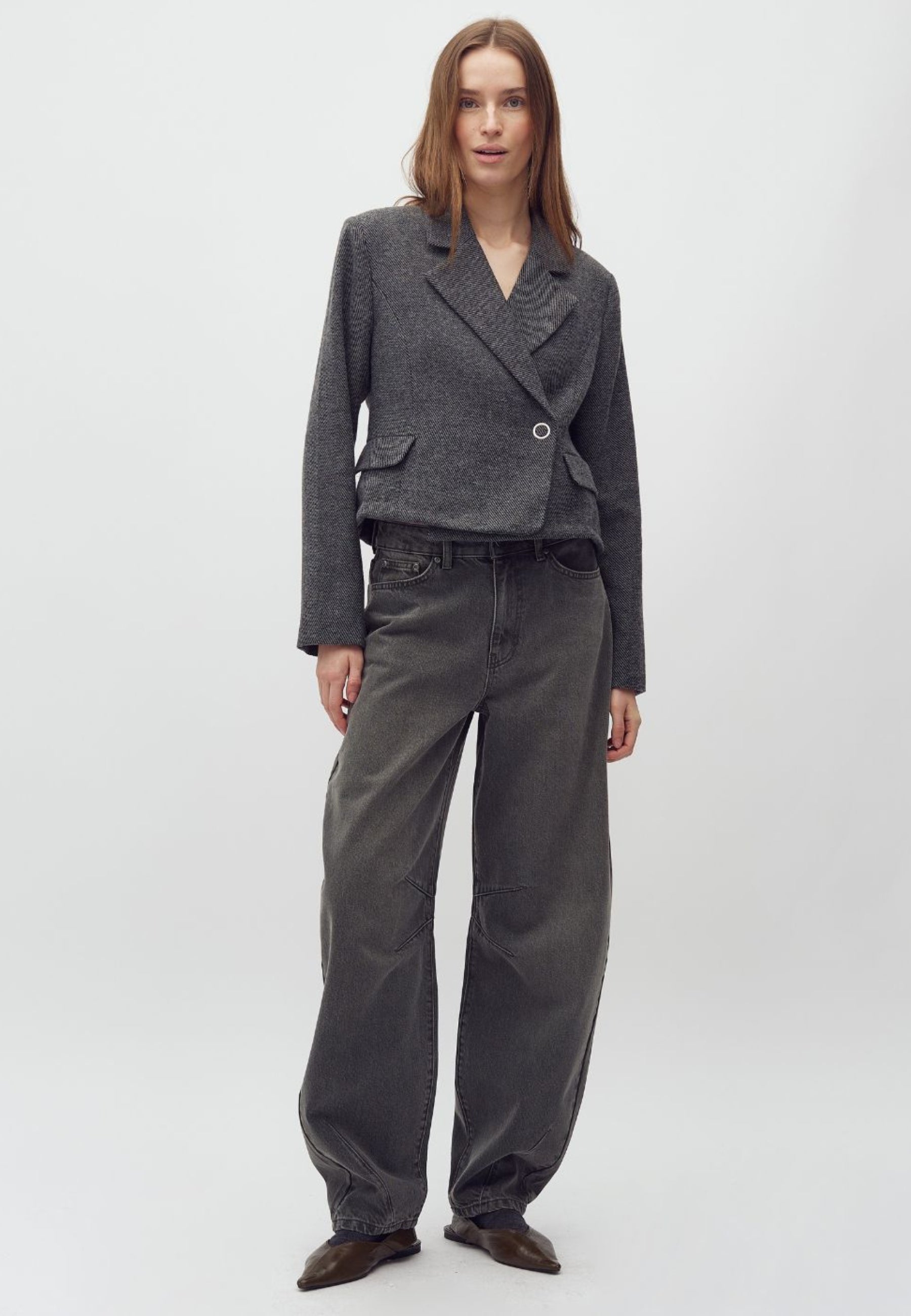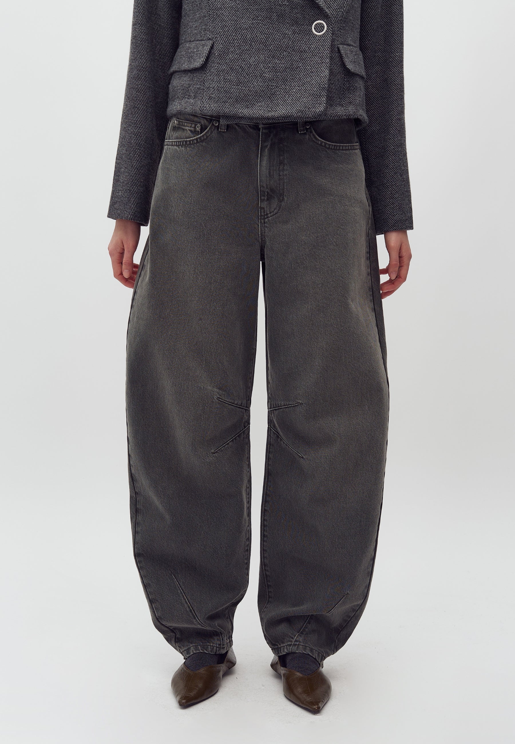 Barrel-Jeans in khakigrüner Waschung.