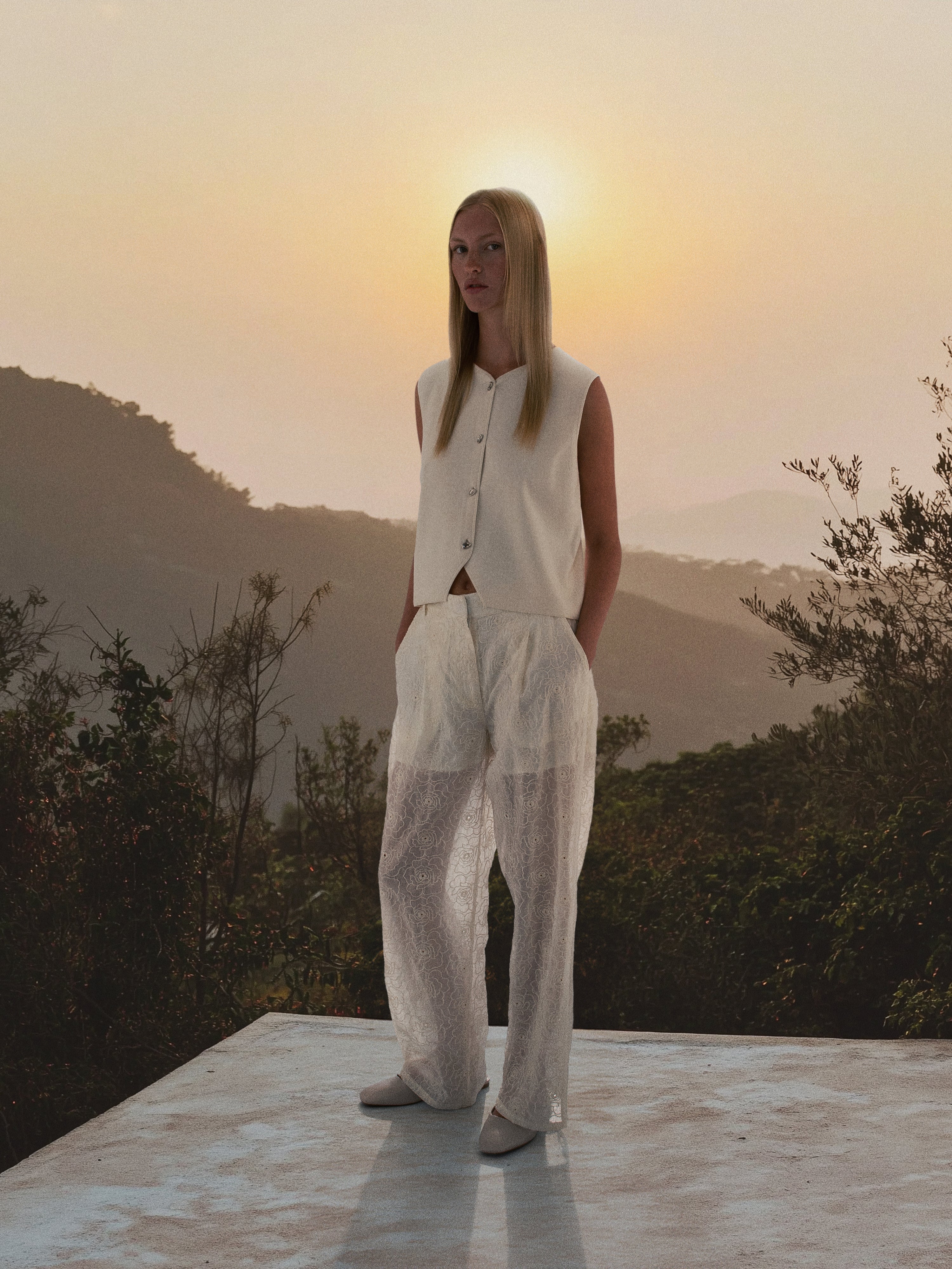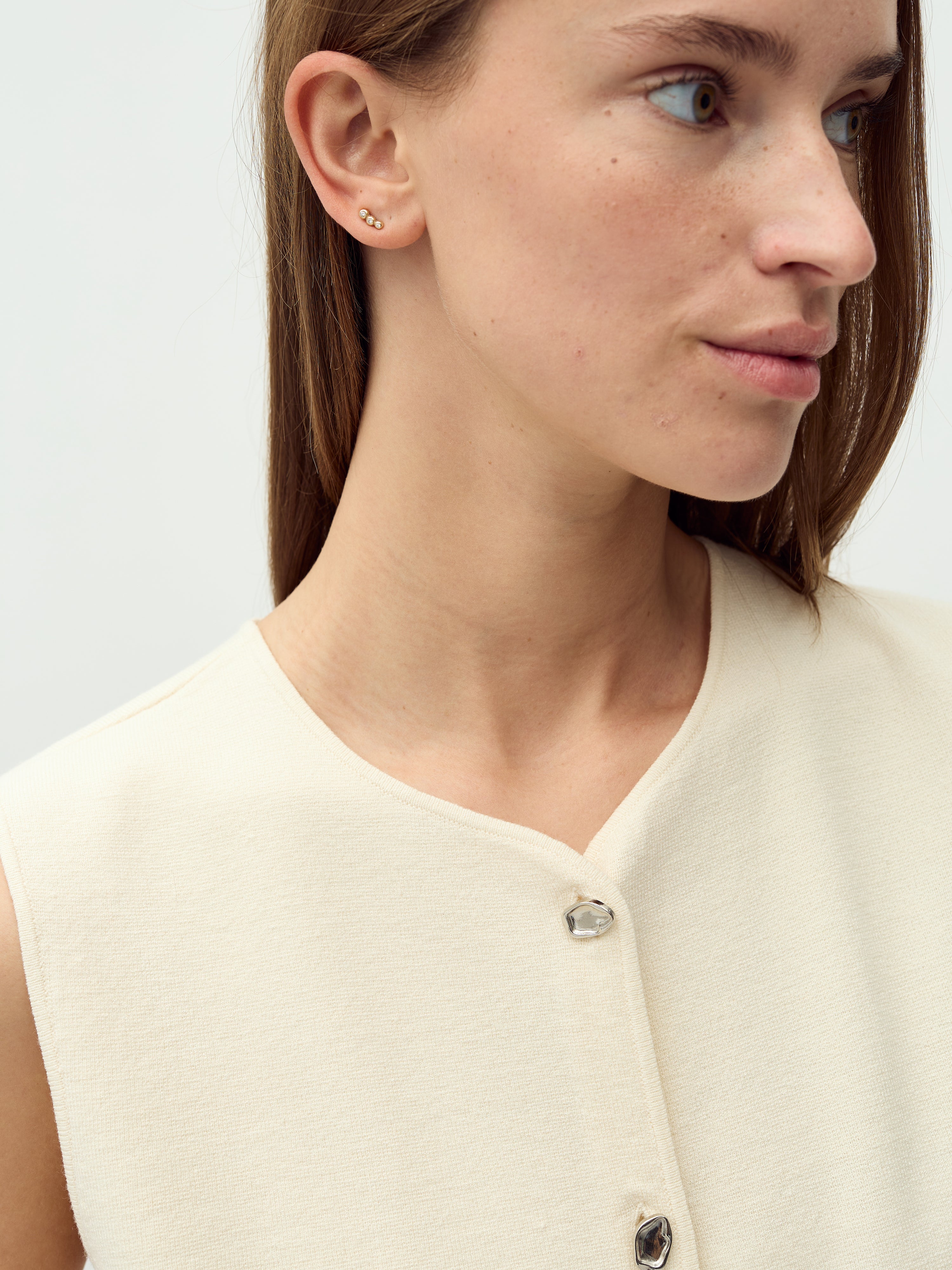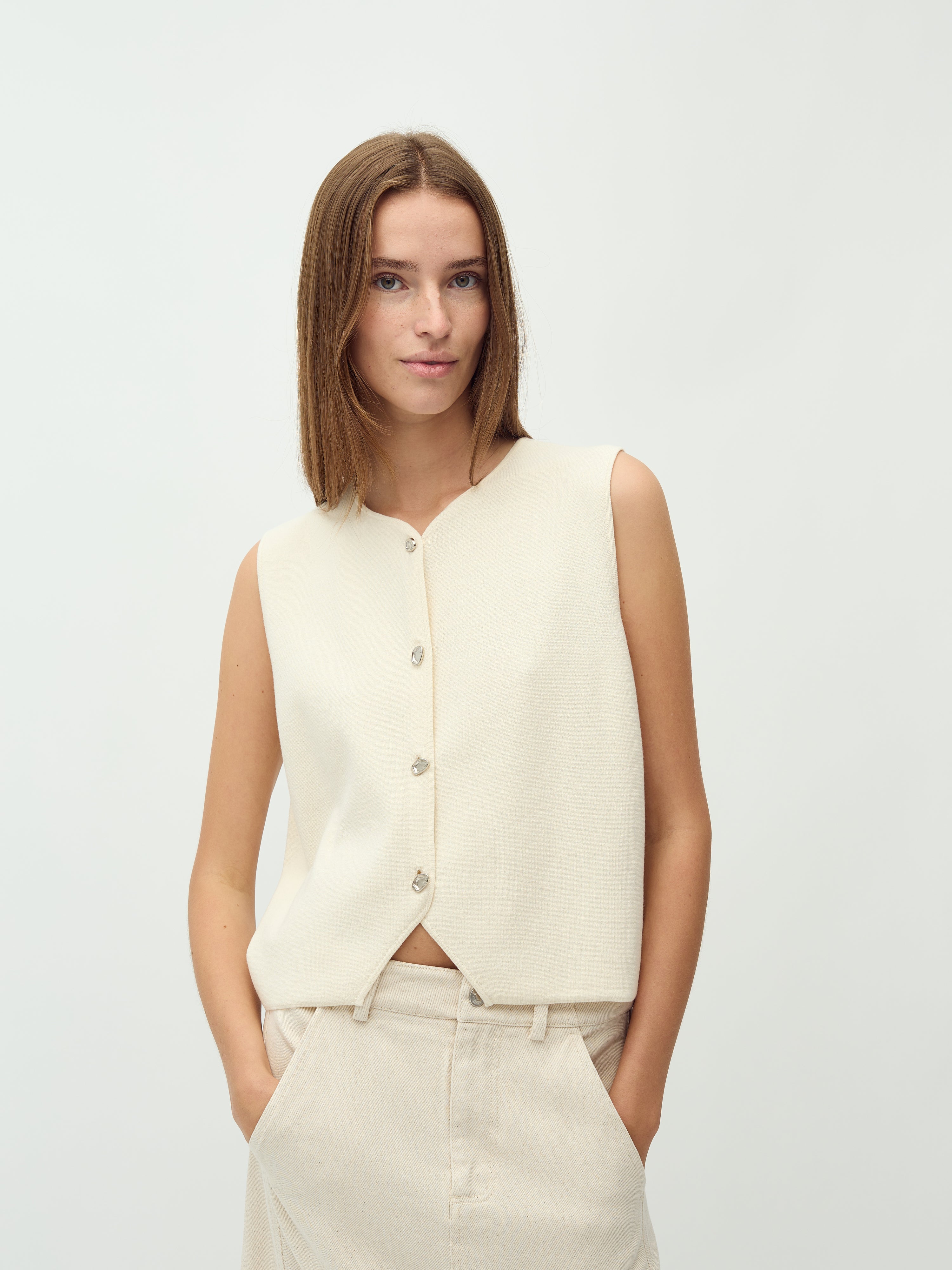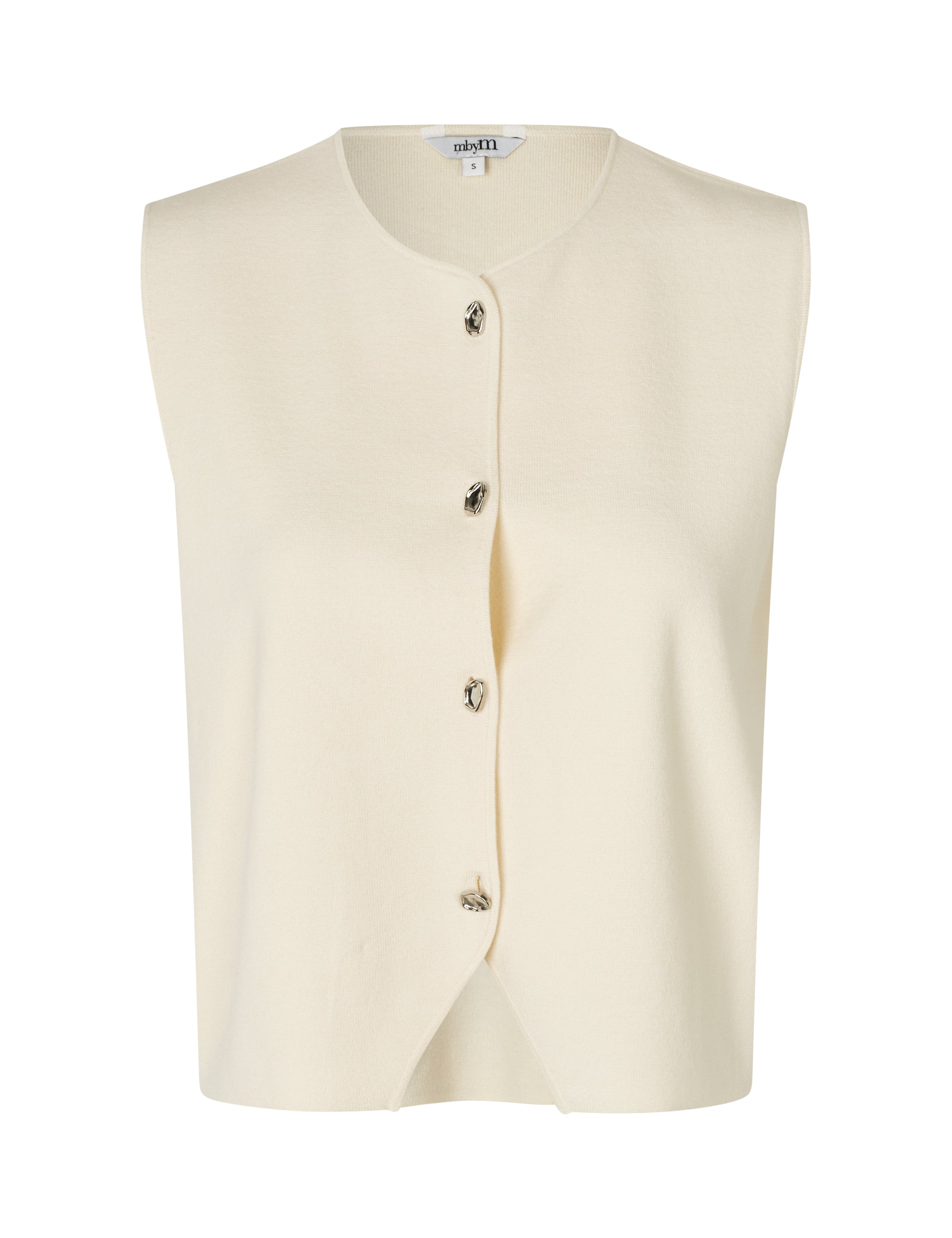 Gestrickte Weste mit Silberknöpfen.