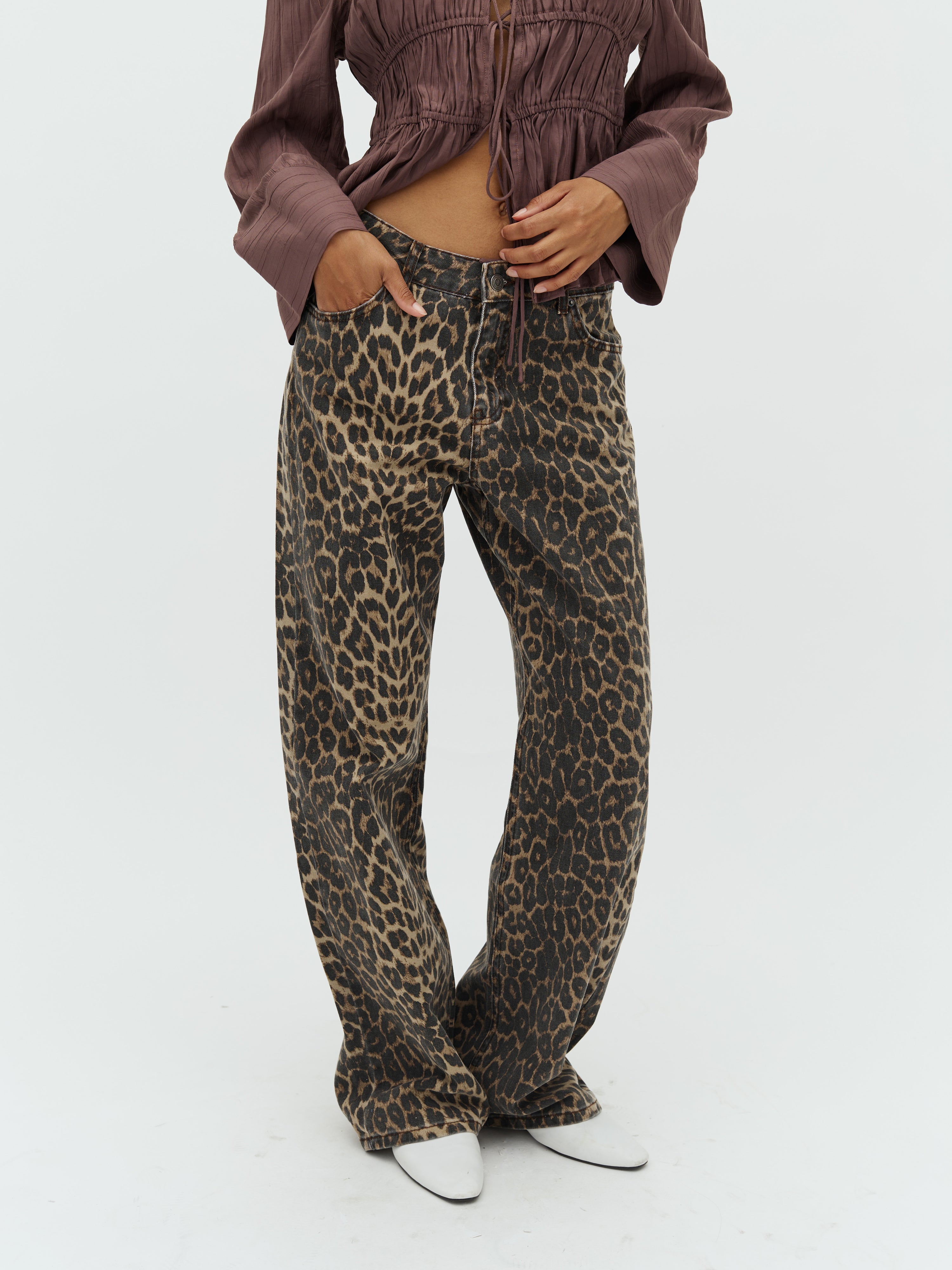 Jeans mit niedrigem Bund in Leoparden-Denim.