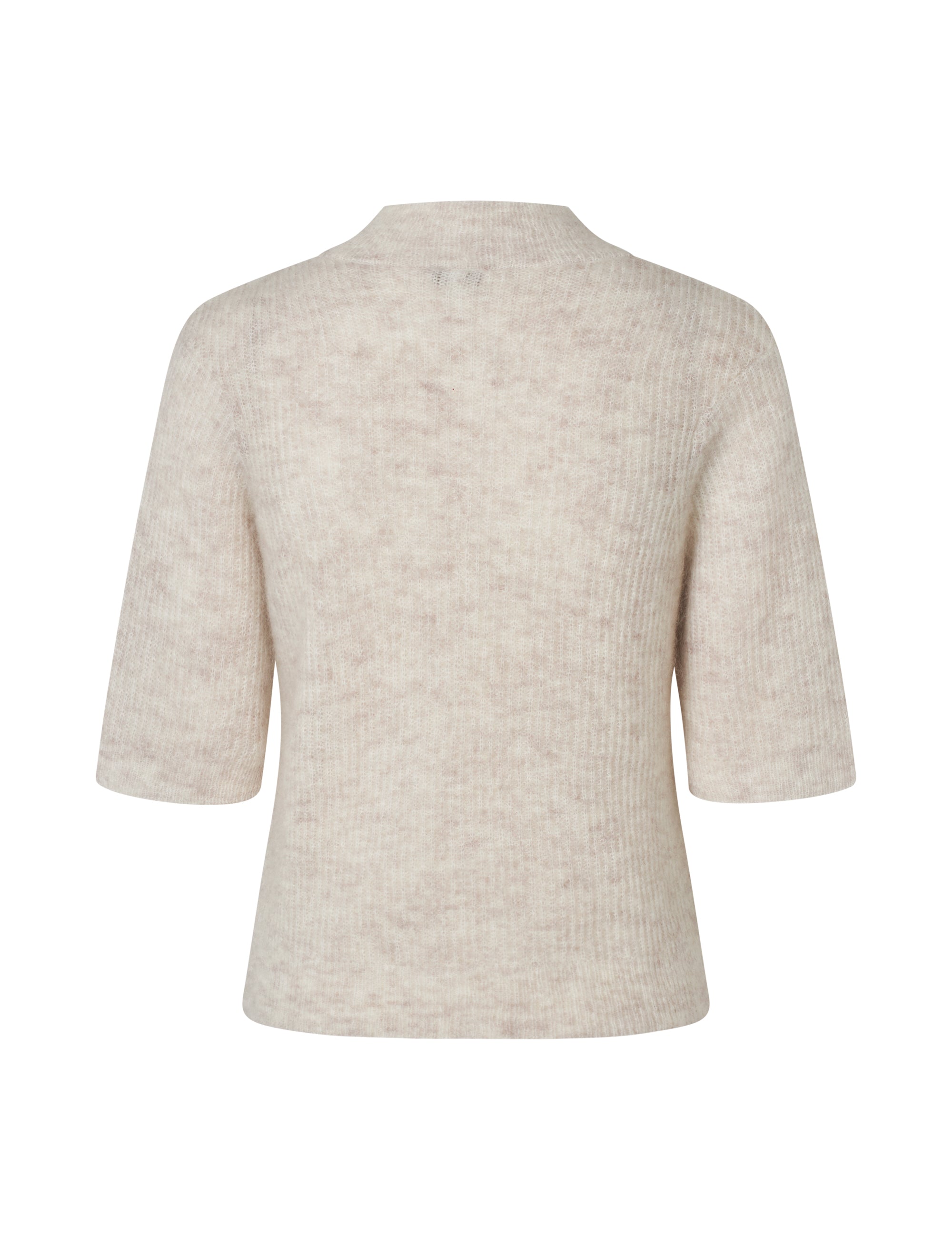 Kurzärmeliger dünner Strick mit hohem Kragen.