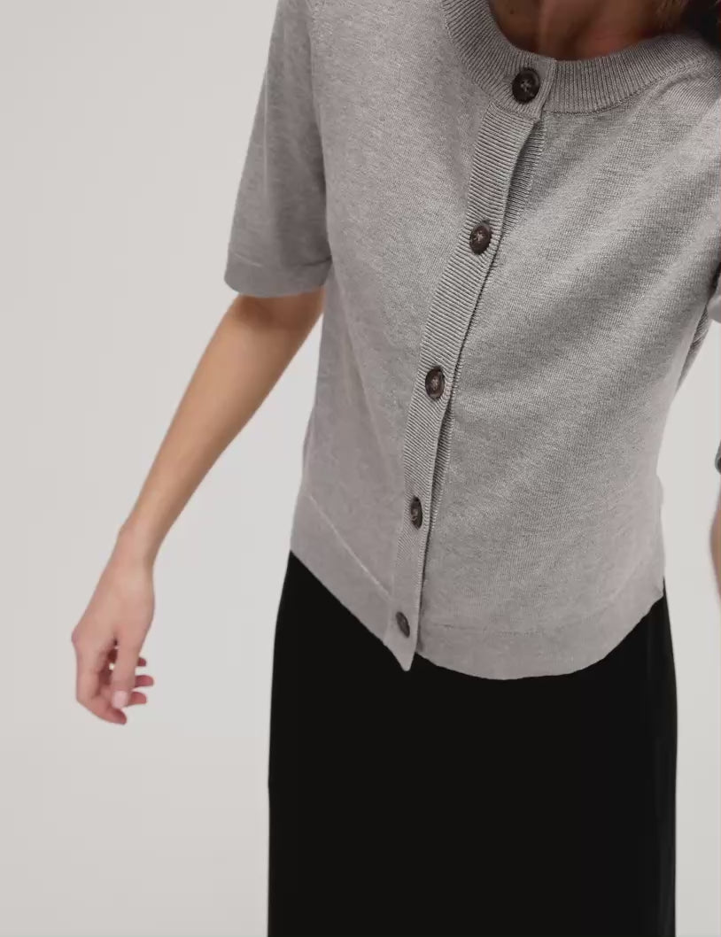 - Detail mit asymmetrischem Knopf und verstecktem Reißverschluss