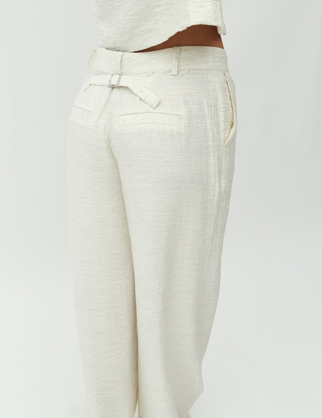 Gerade geschnittene Hose mit verstellbarem Schnallenverschluss.
