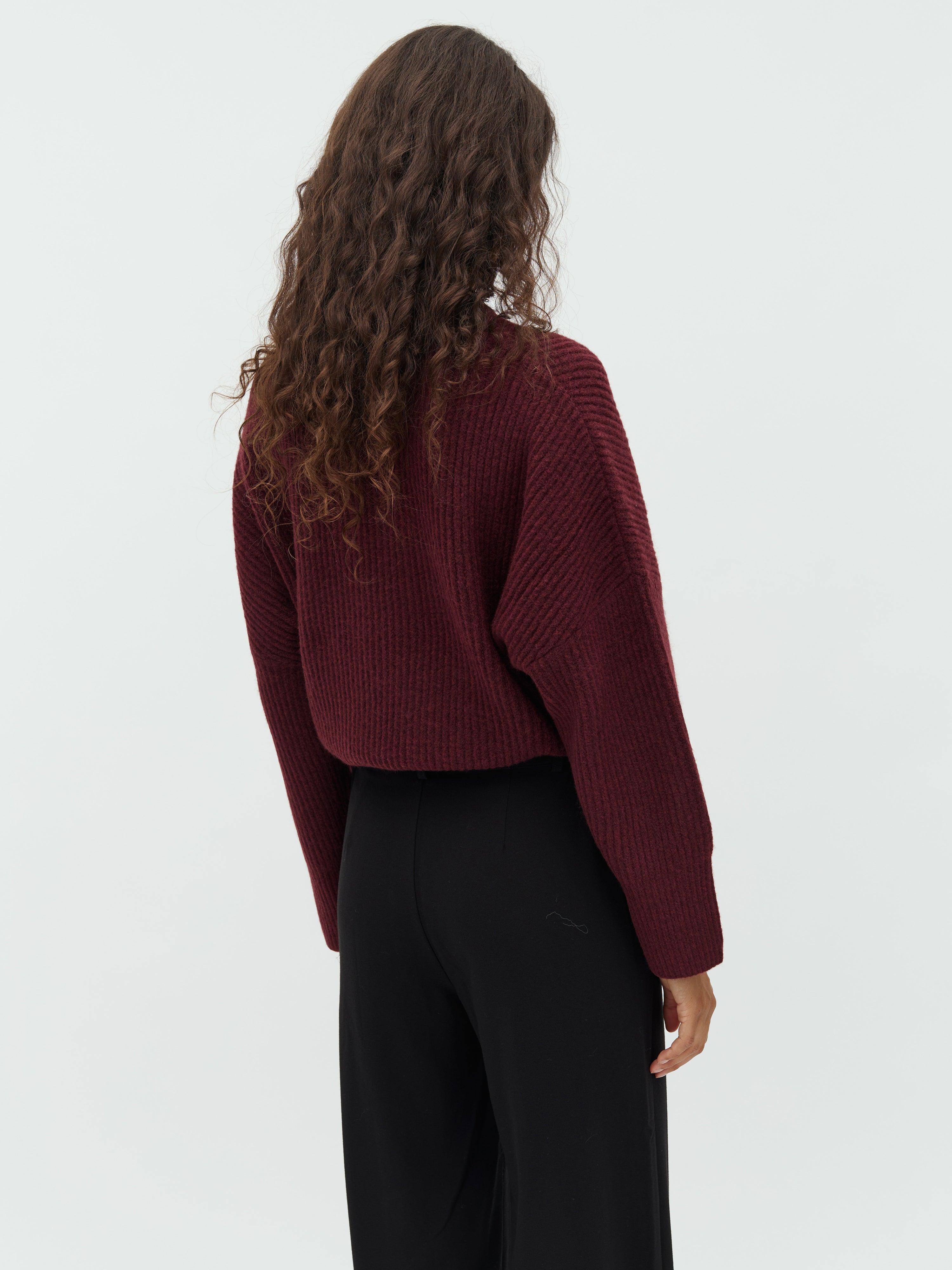 Strickpullover mit Rundhalsausschnitt und überschnittenen Schultern.