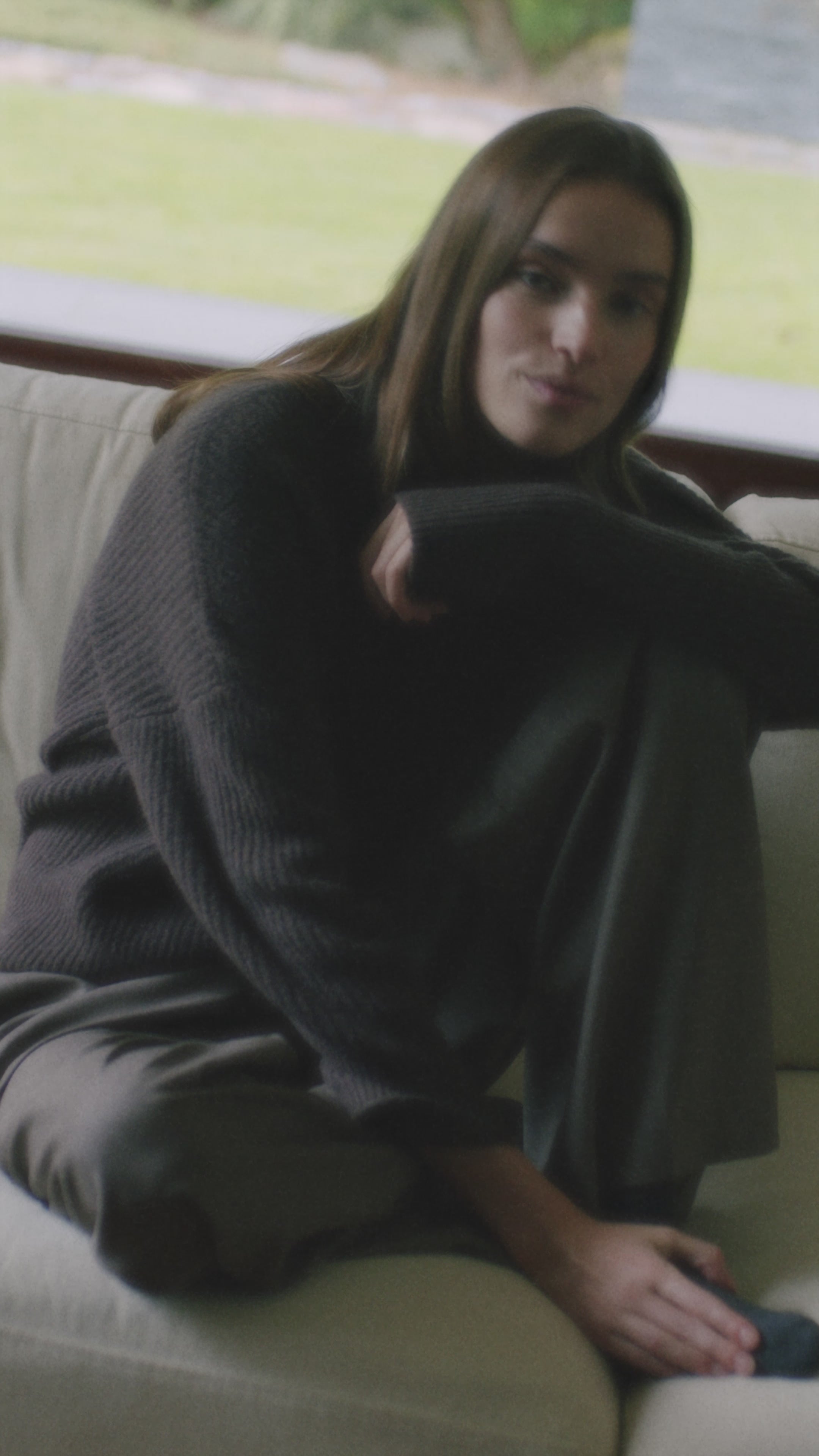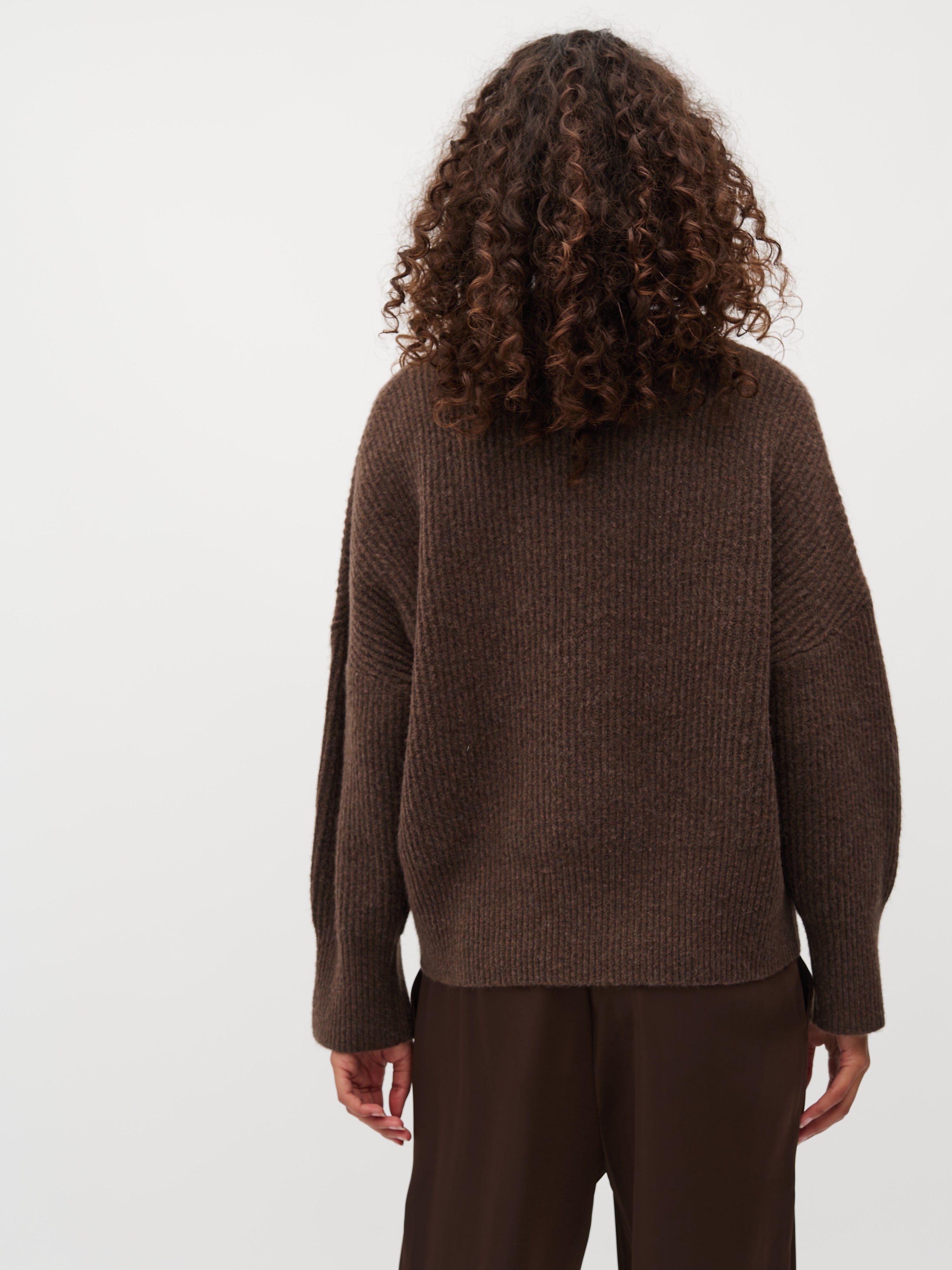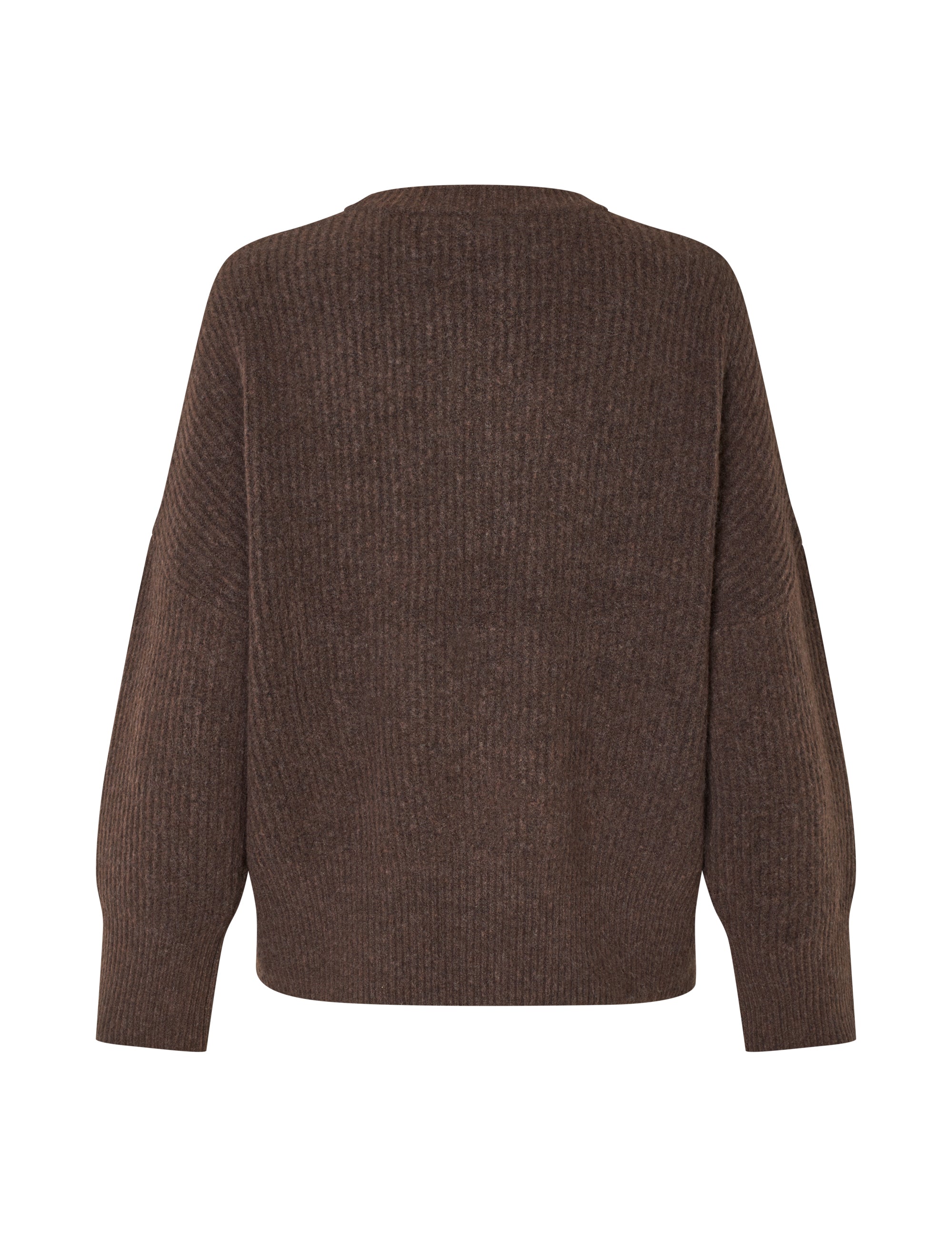Strickpullover mit Rundhalsausschnitt und überschnittenen Schultern.