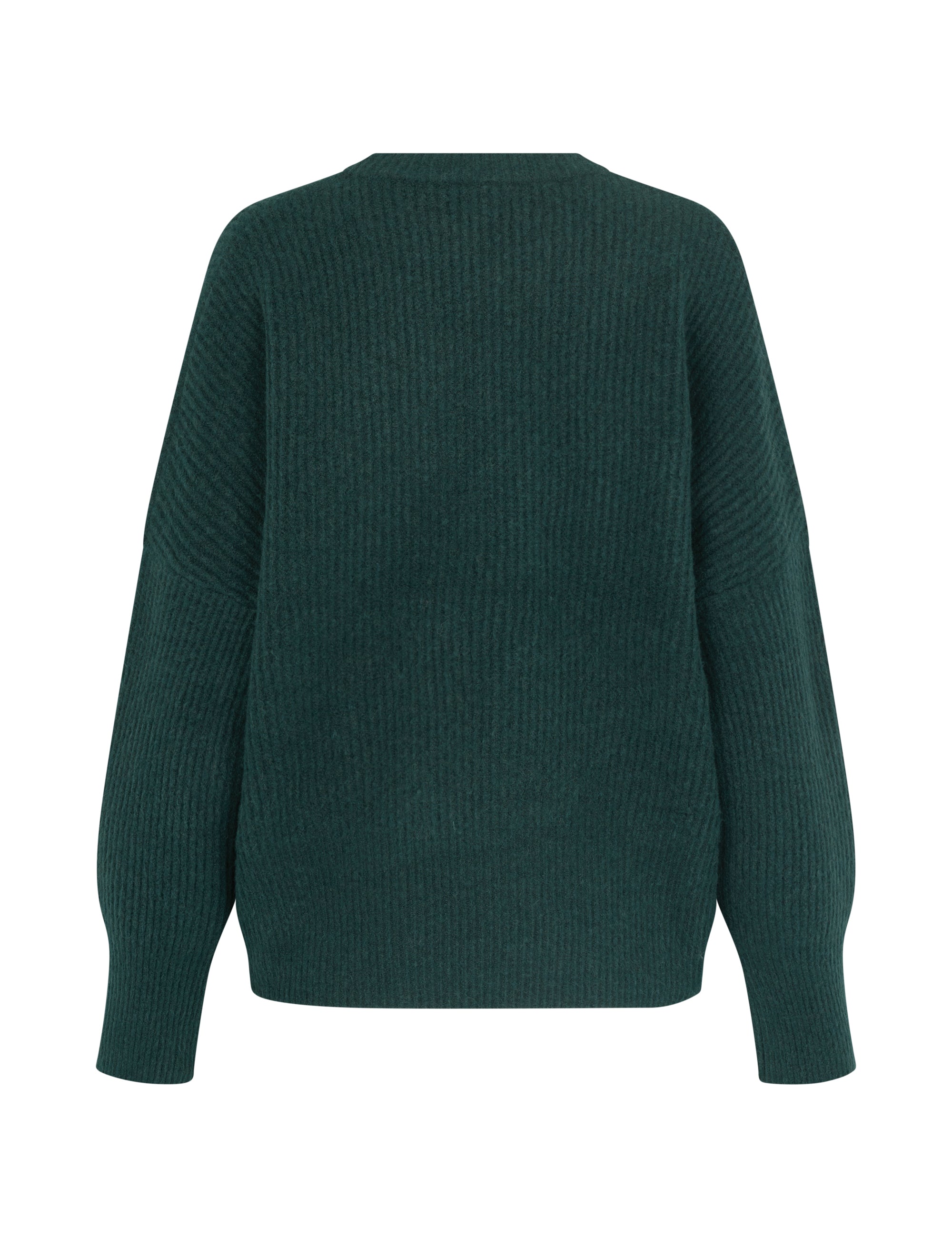 Strickpullover mit Rundhalsausschnitt und überschnittenen Schultern.