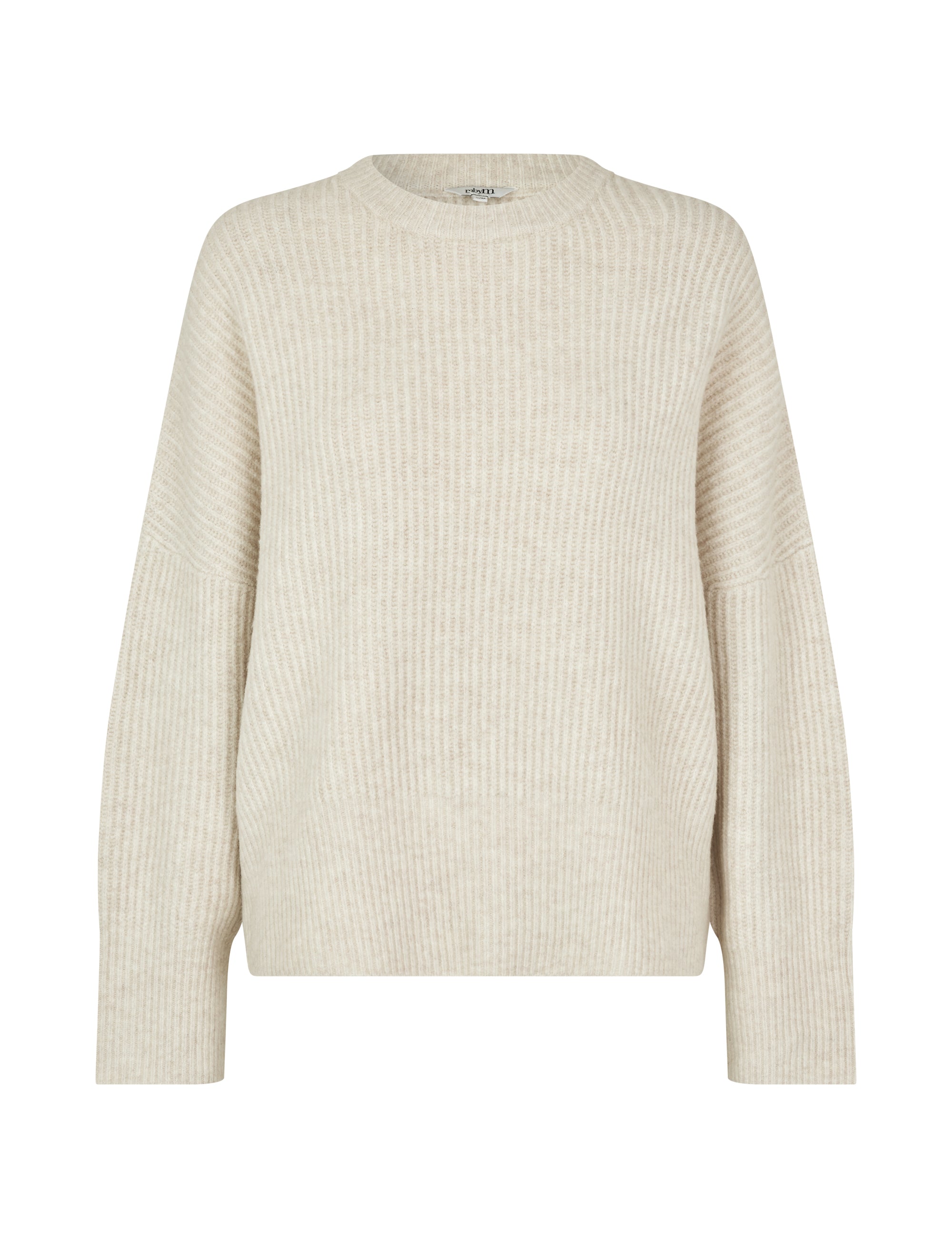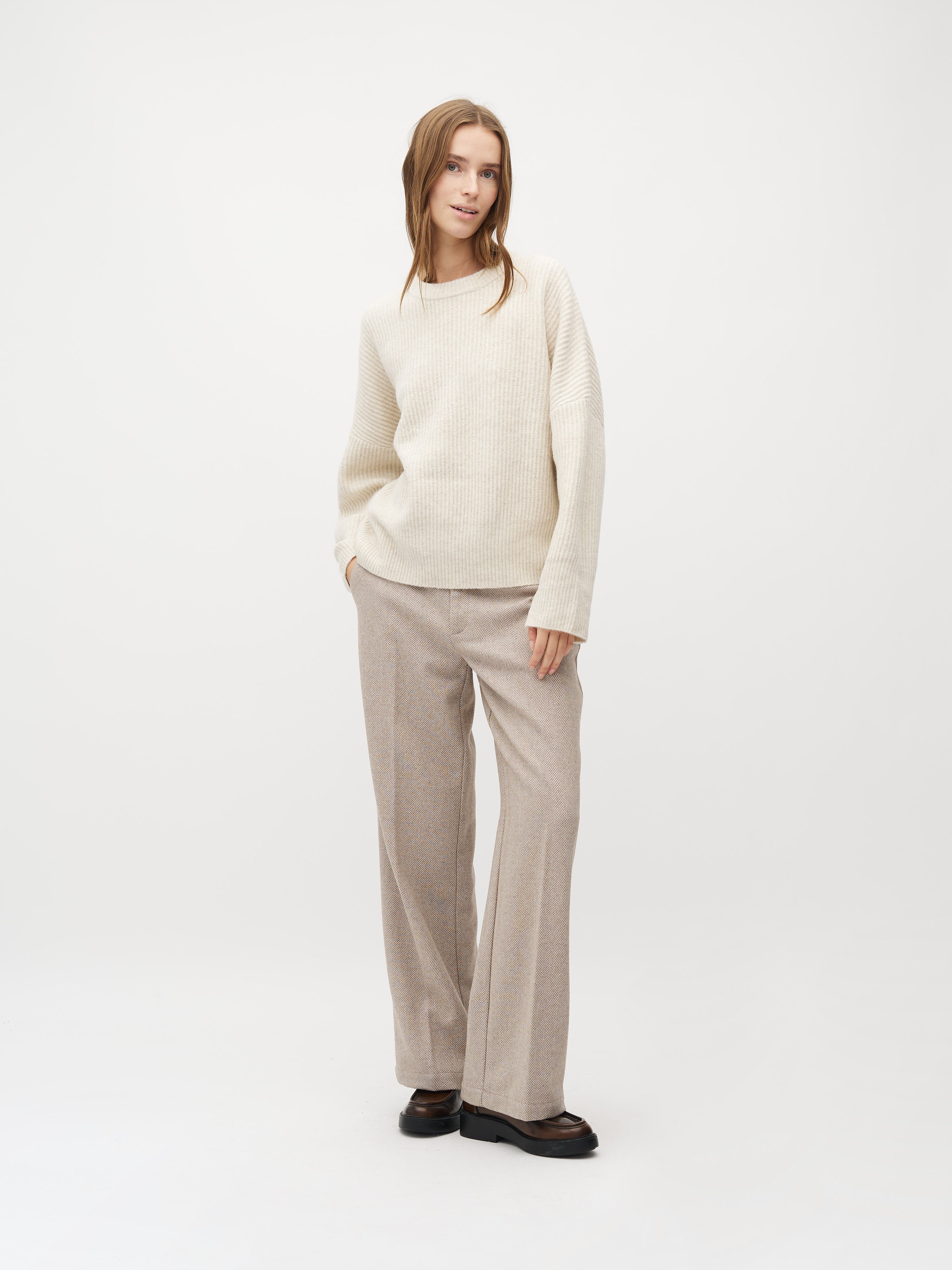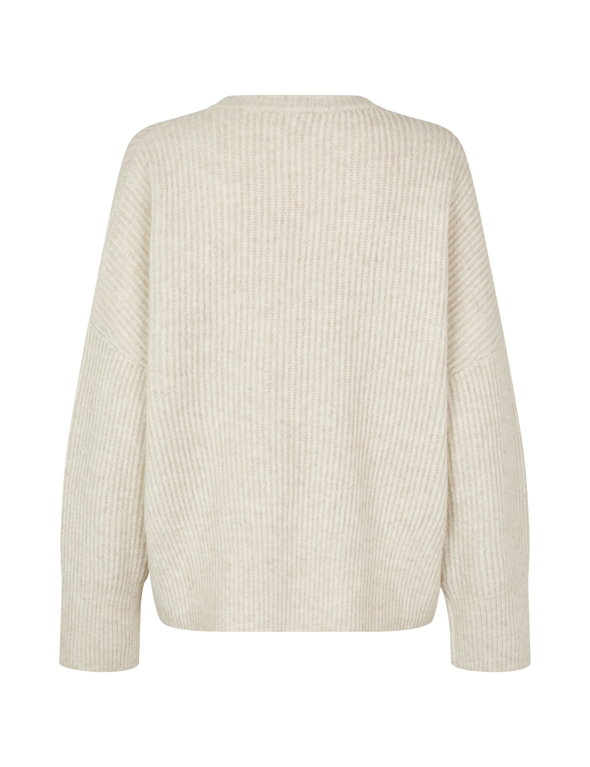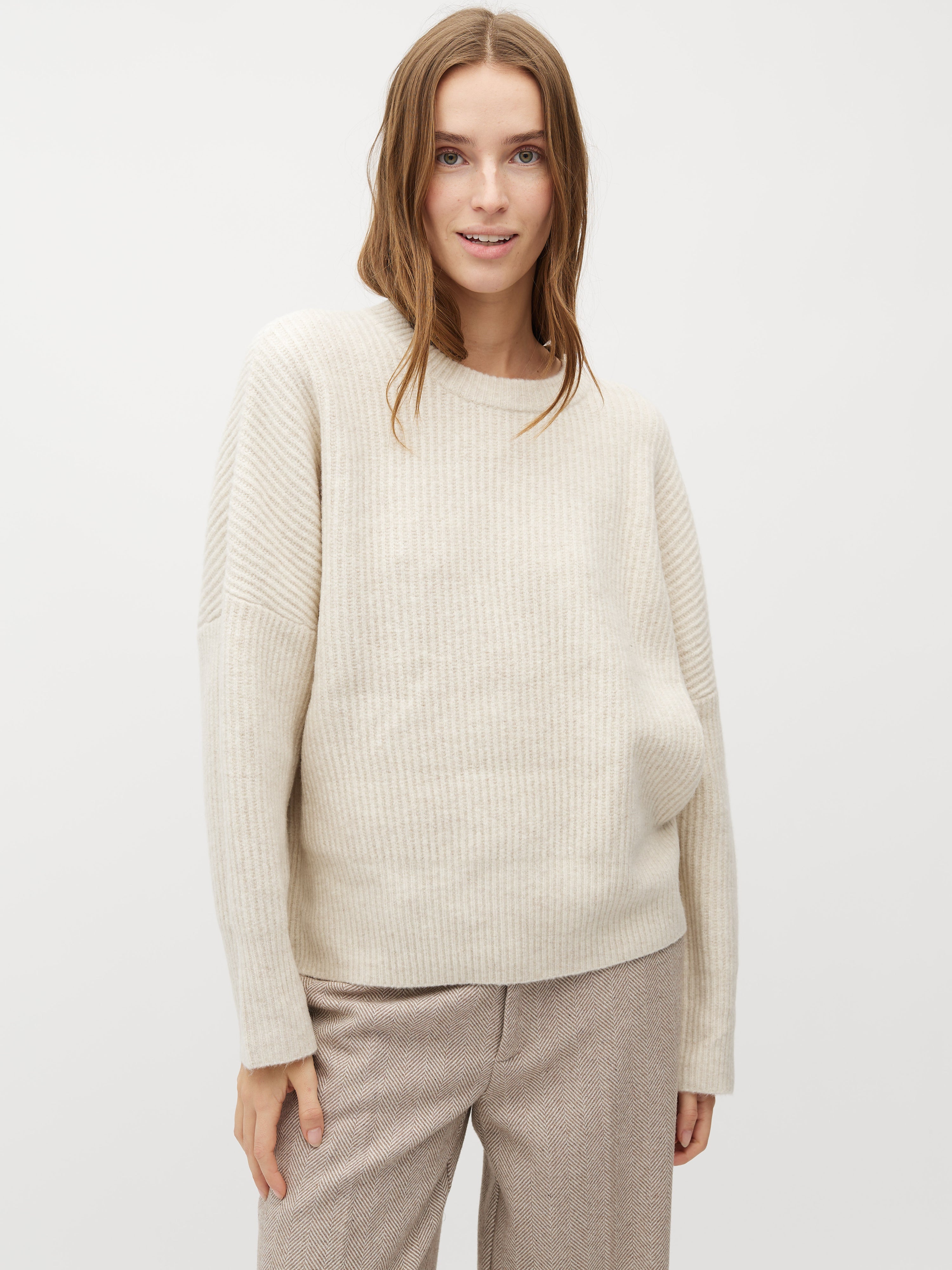 Strickpullover mit Rundhalsausschnitt und überschnittenen Schultern.