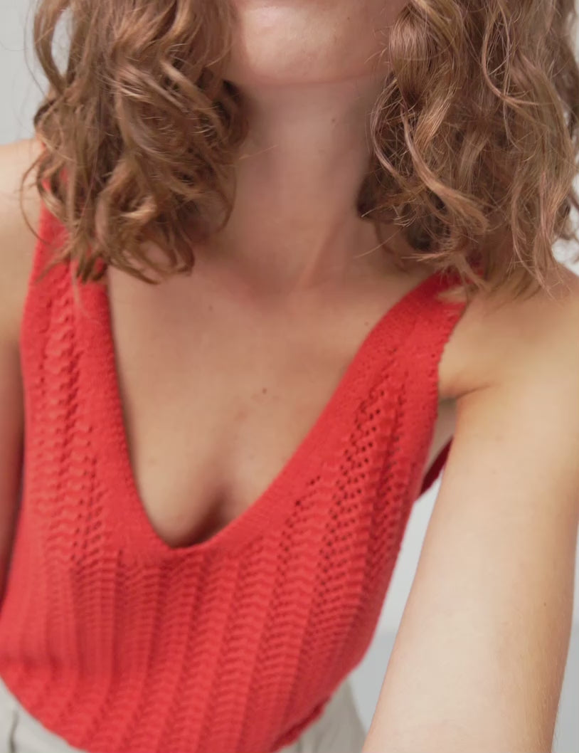 Gestricktes Oberteil mit tiefem Ausschnitt.