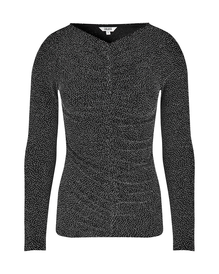 Eng anliegende Bluse mit Rüschendetails und Glitter.