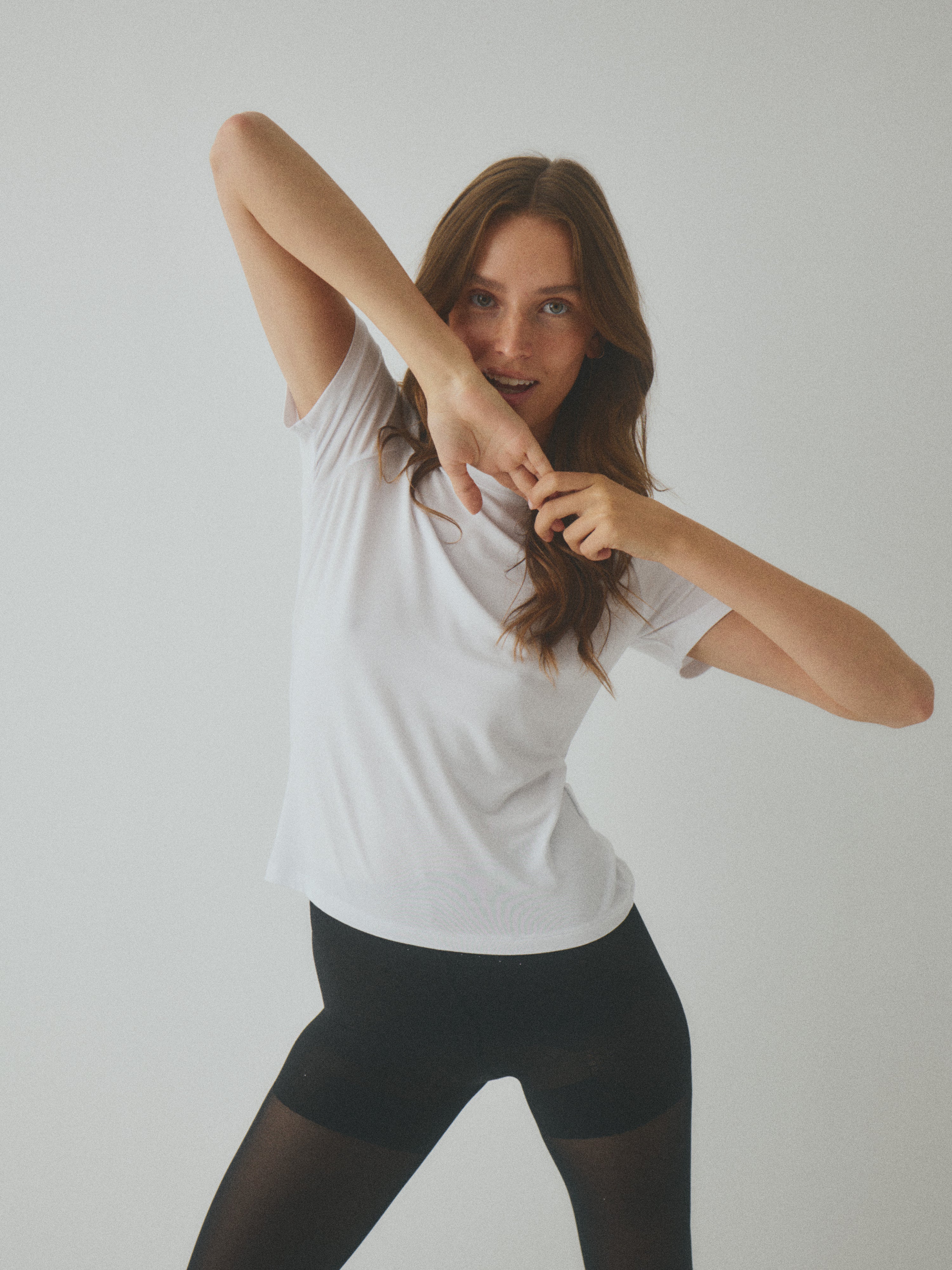 Basic-T-Shirt mit Rundhalsausschnitt.