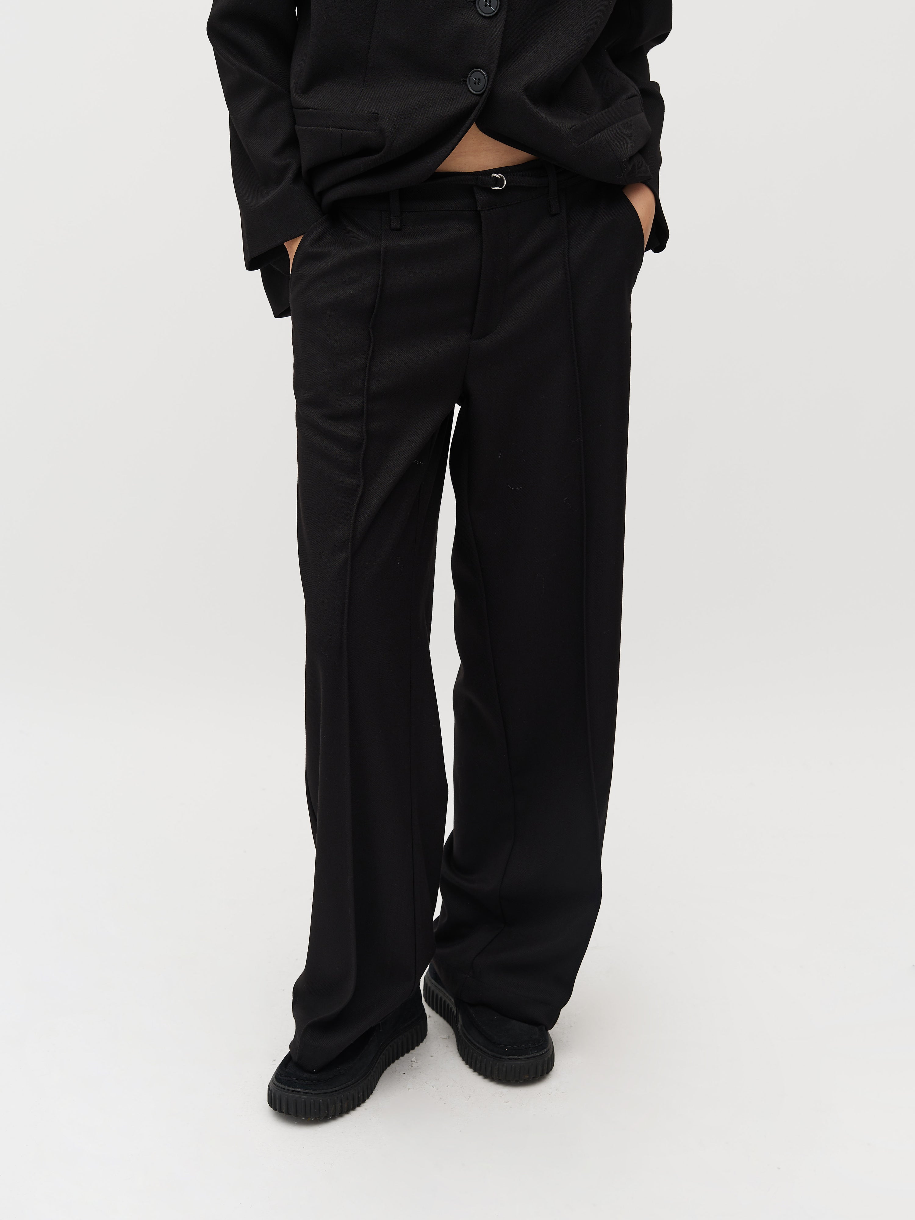 Hose mit schmalem abnehmbarem Gürtel.