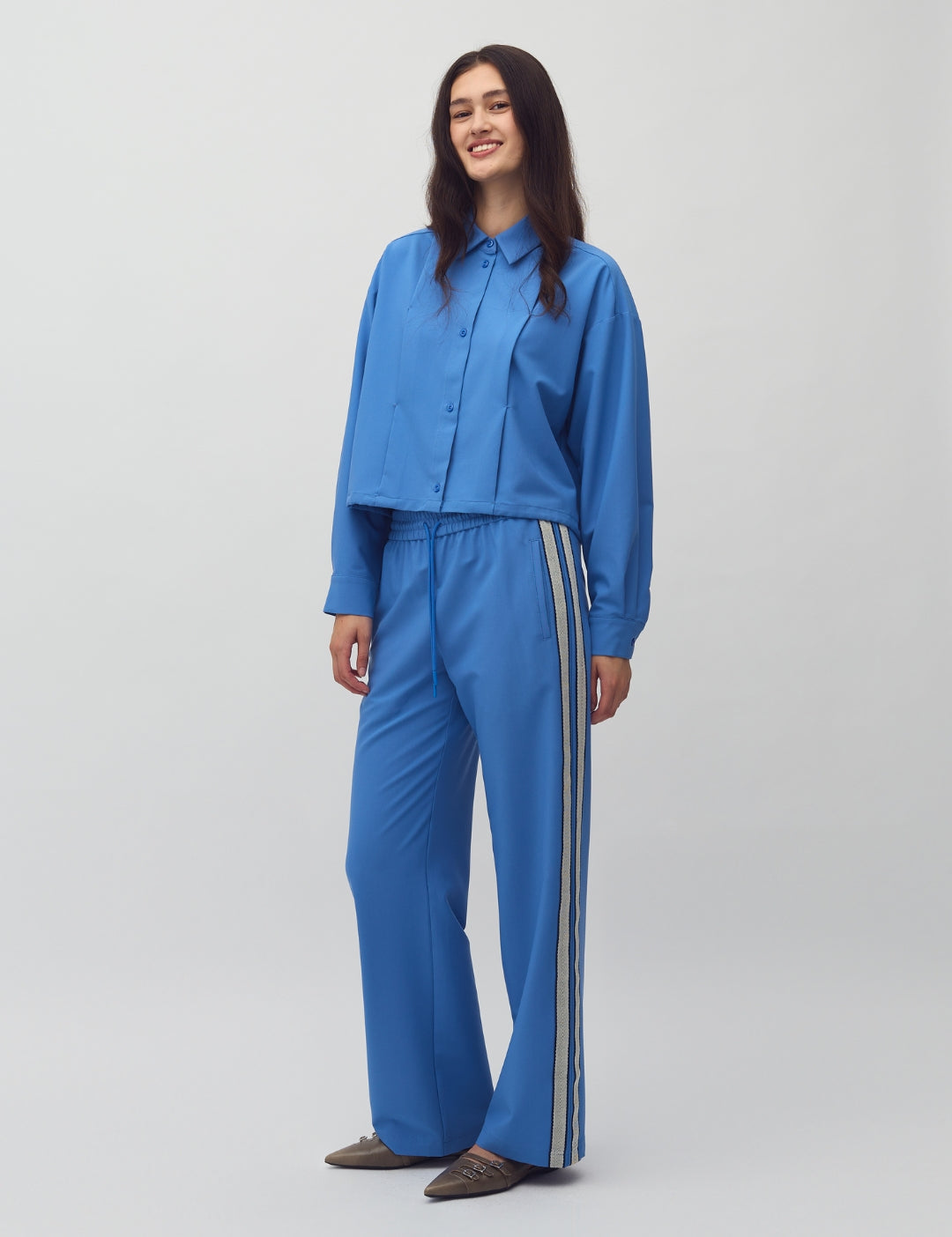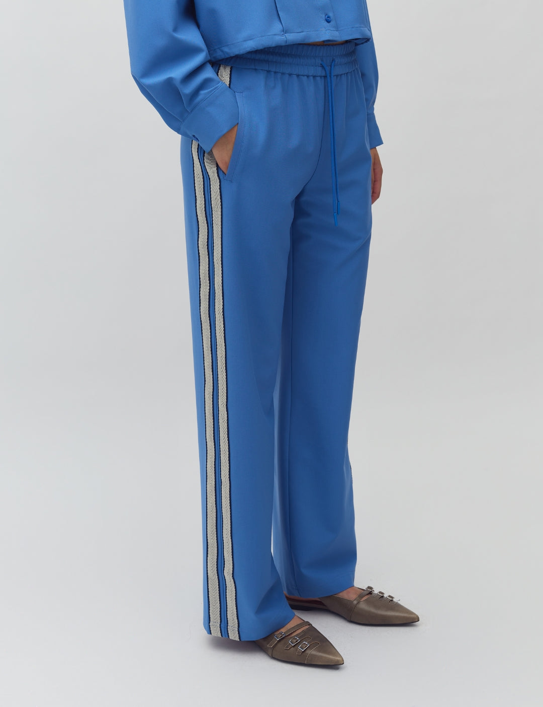 Lockere Hose mit seitlichem Streifen und Gummizug in der Taille.