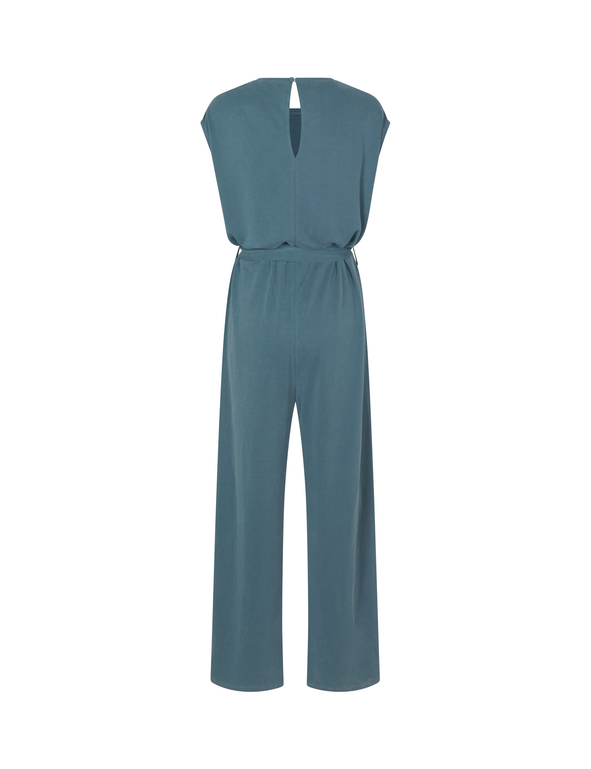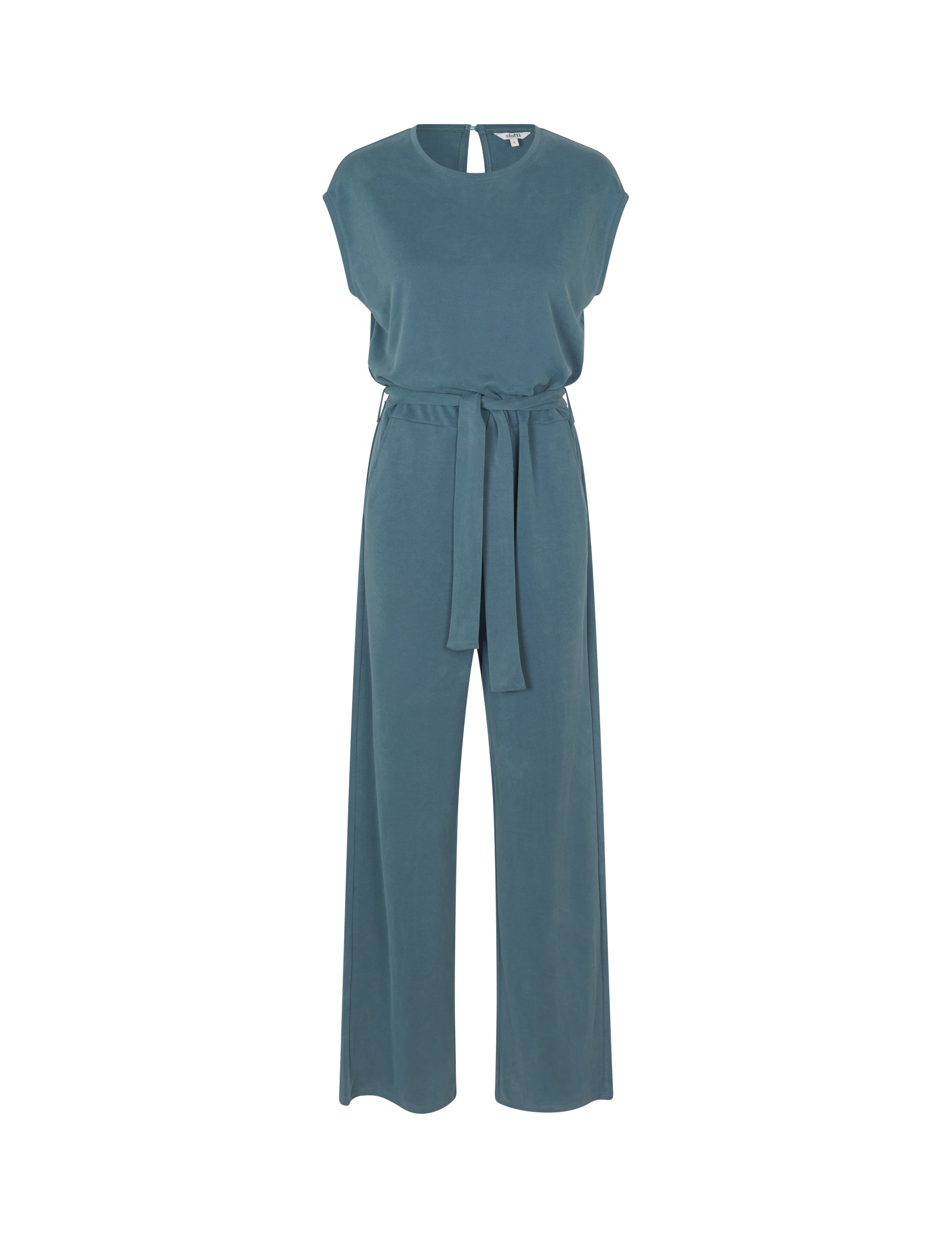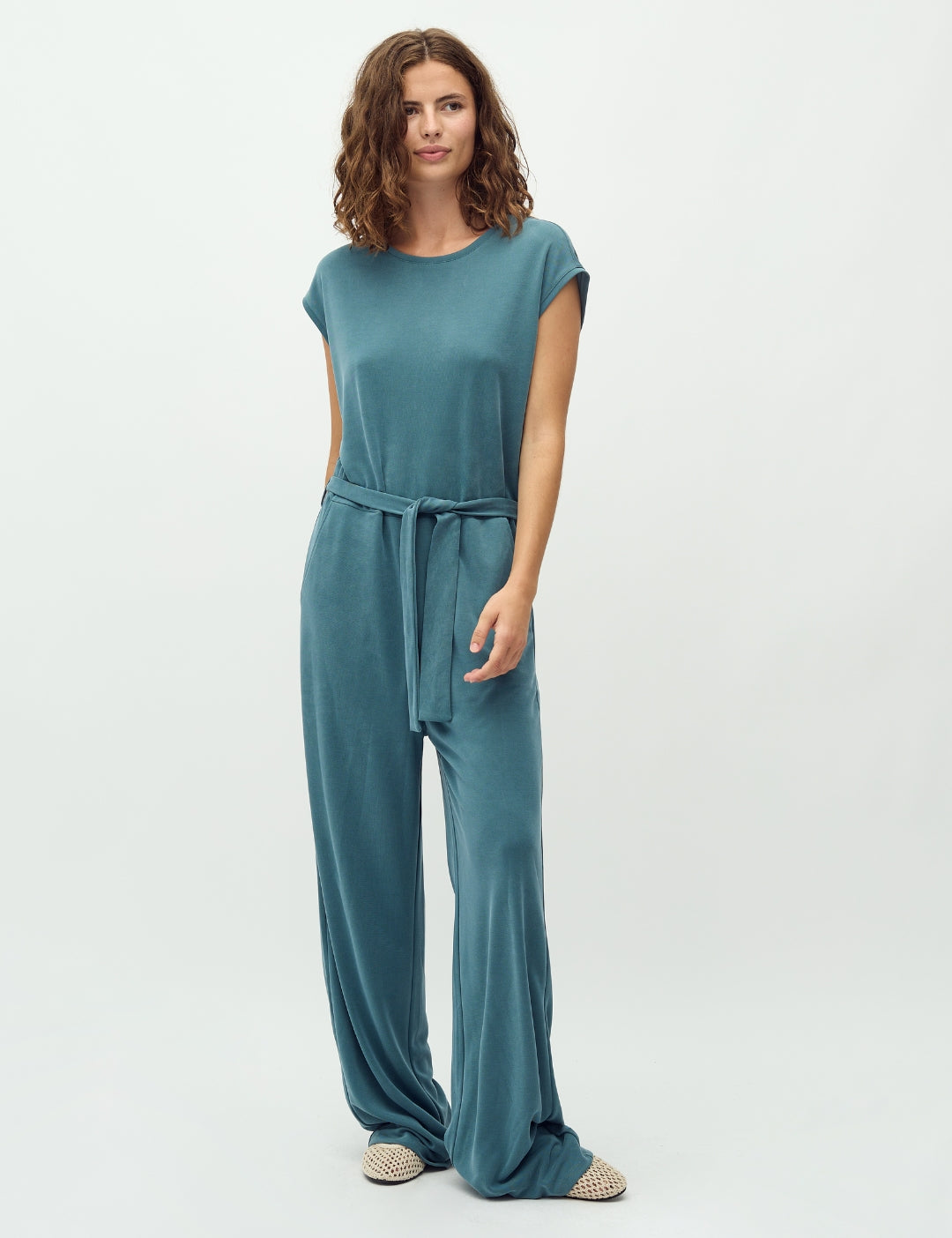 Jumpsuit mit Bindegürtel und kurzen Ärmeln.