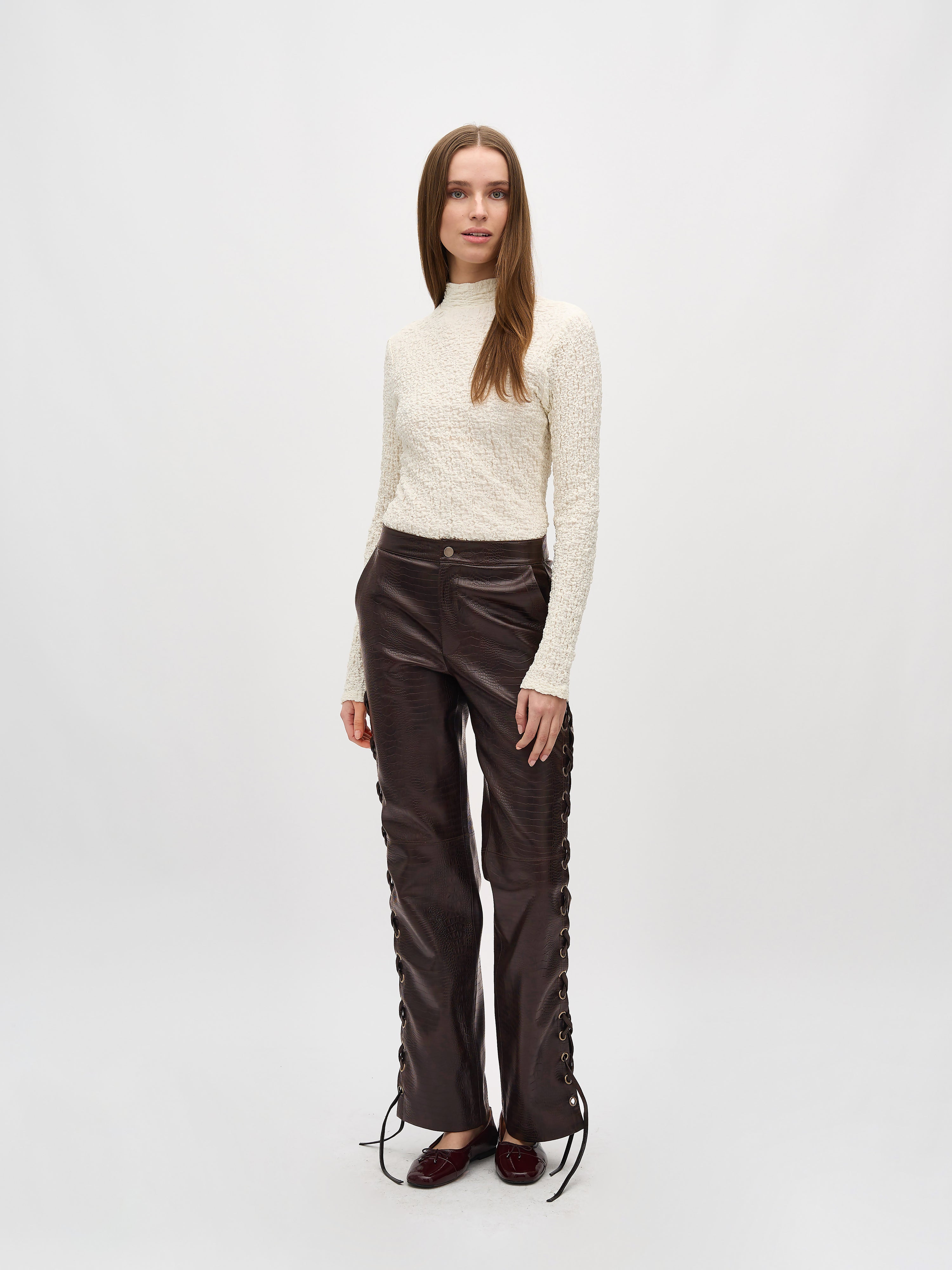 - Bei niedriger Temperatur bügeln. Zum Bügeln auf links drehen.