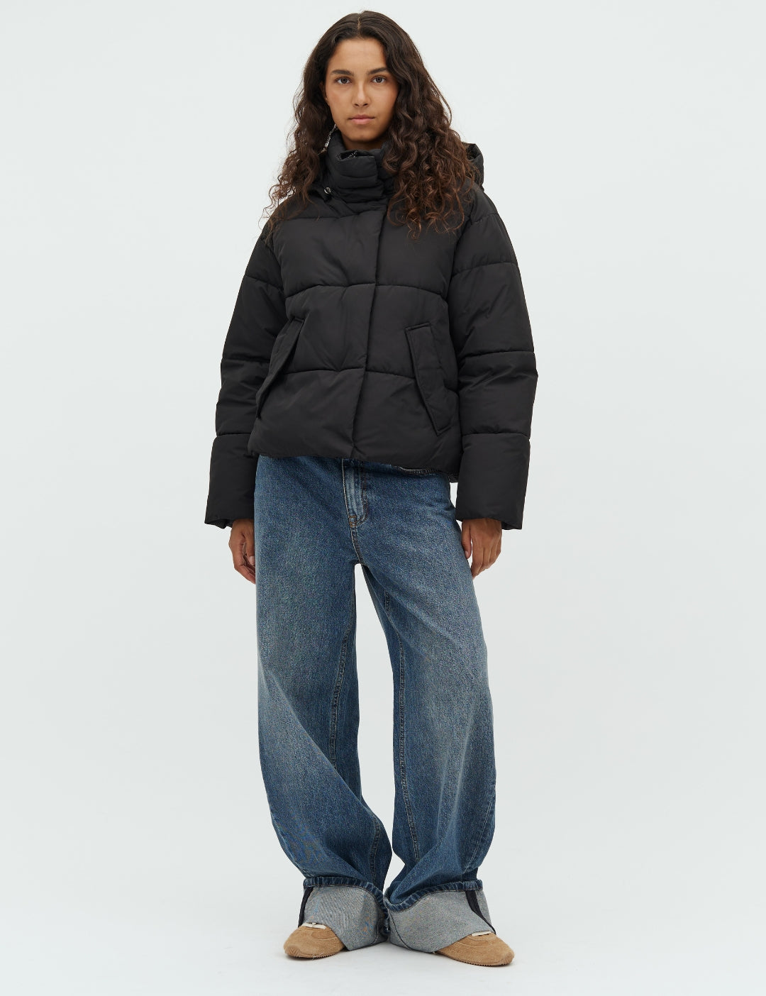 Kurze Steppjacke mit abnehmbarer Kapuze.