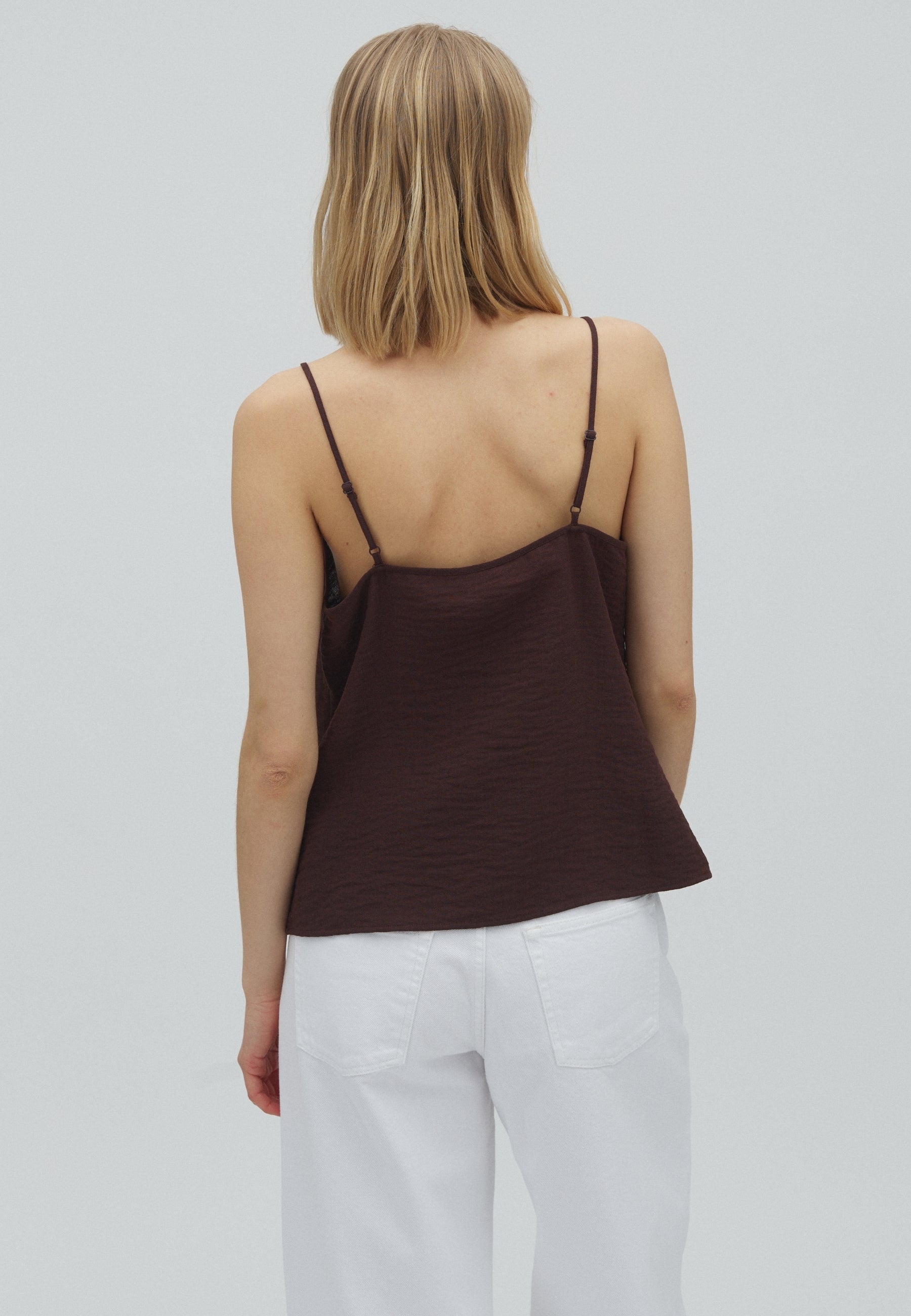 Trägertop mit Spitzenbesatz am Ausschnitt.
