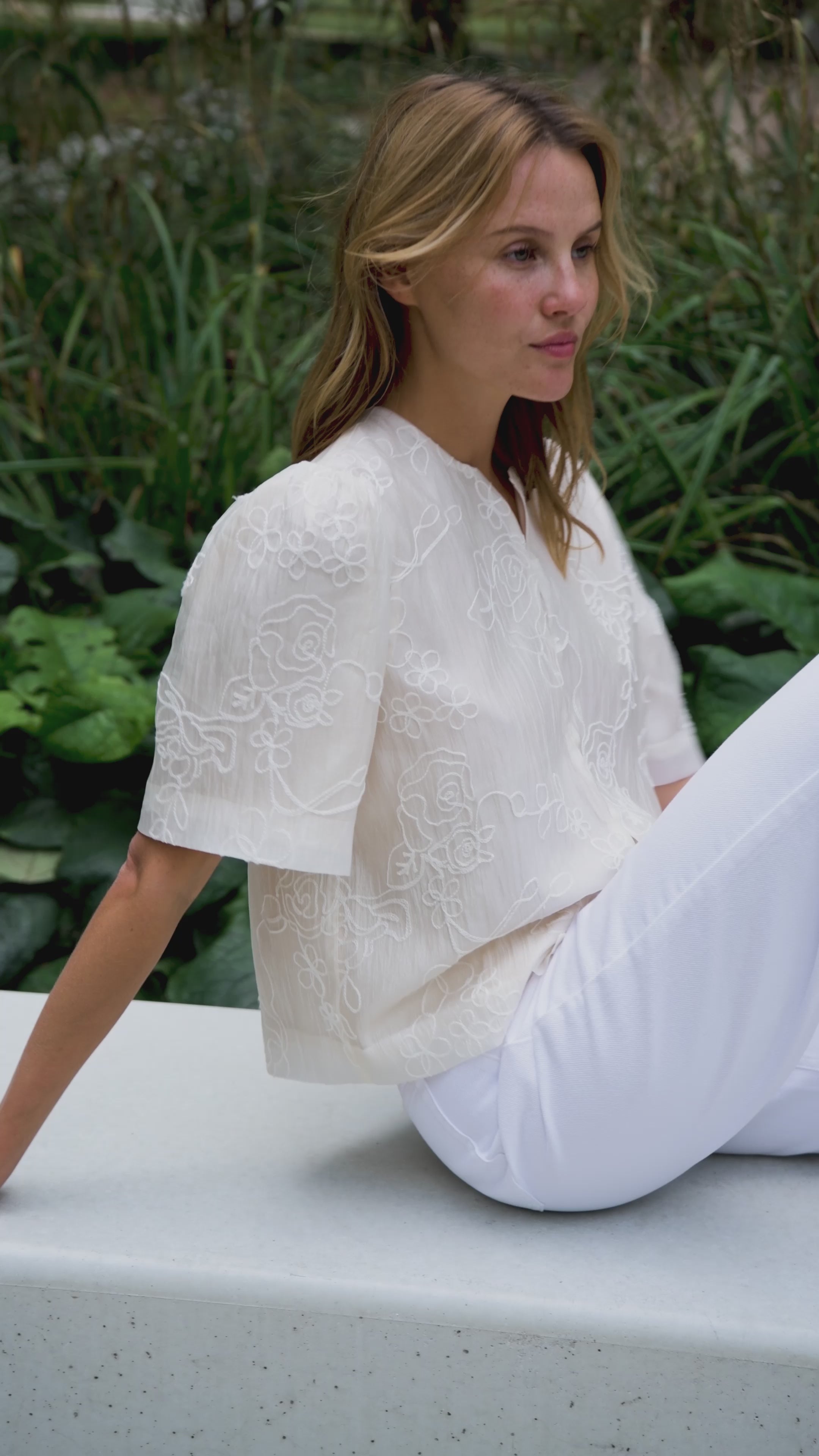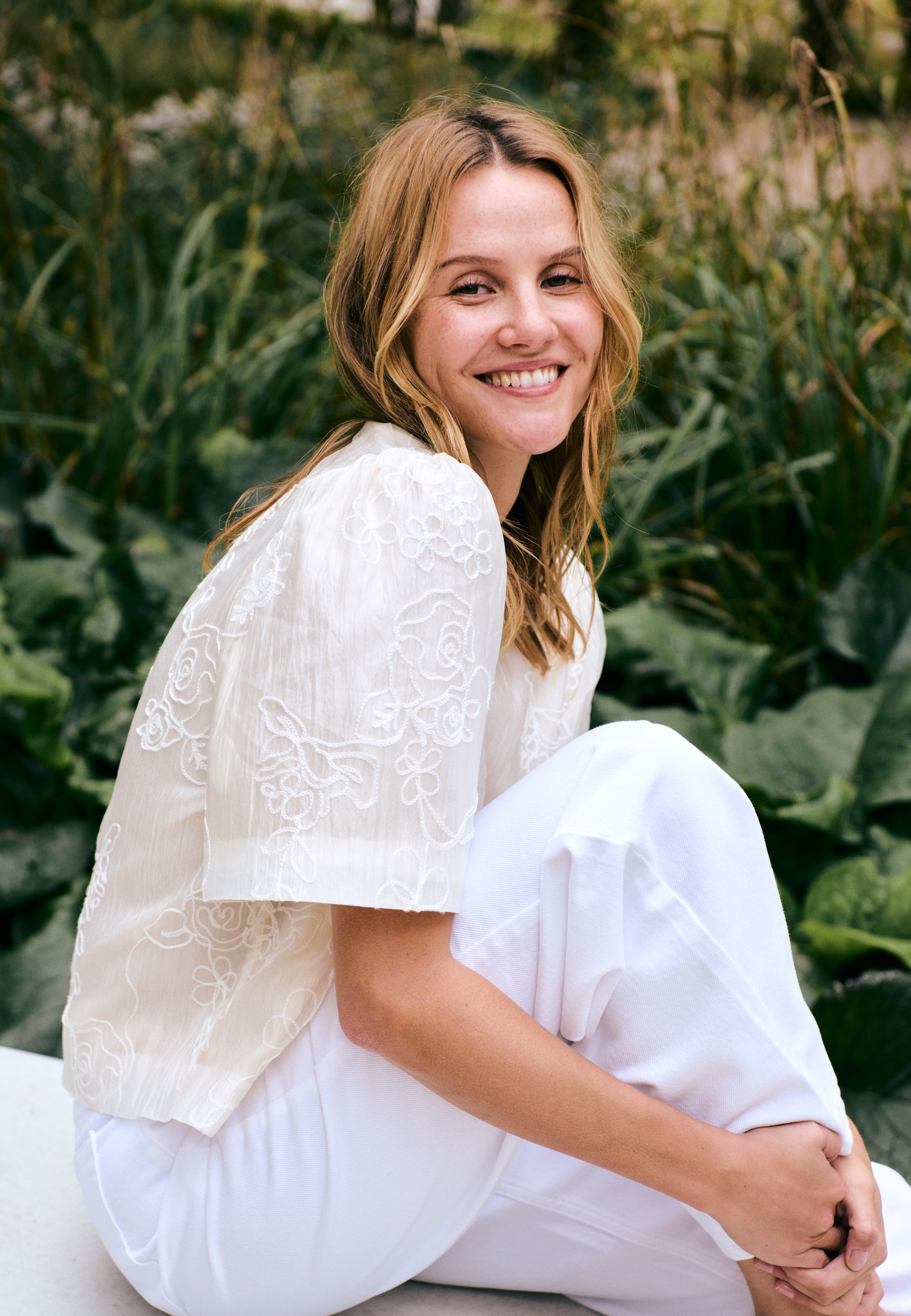 Leichte, kurzärmelige Jacke mit gesticktem Blumenmuster.