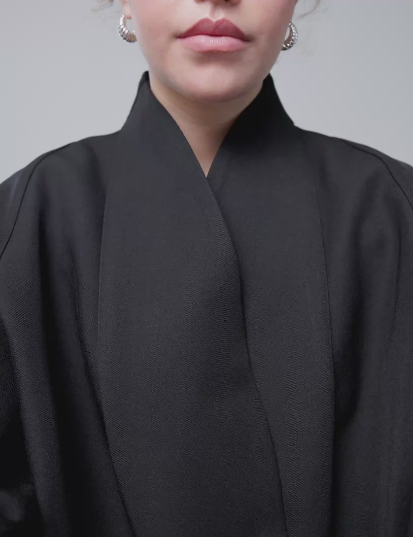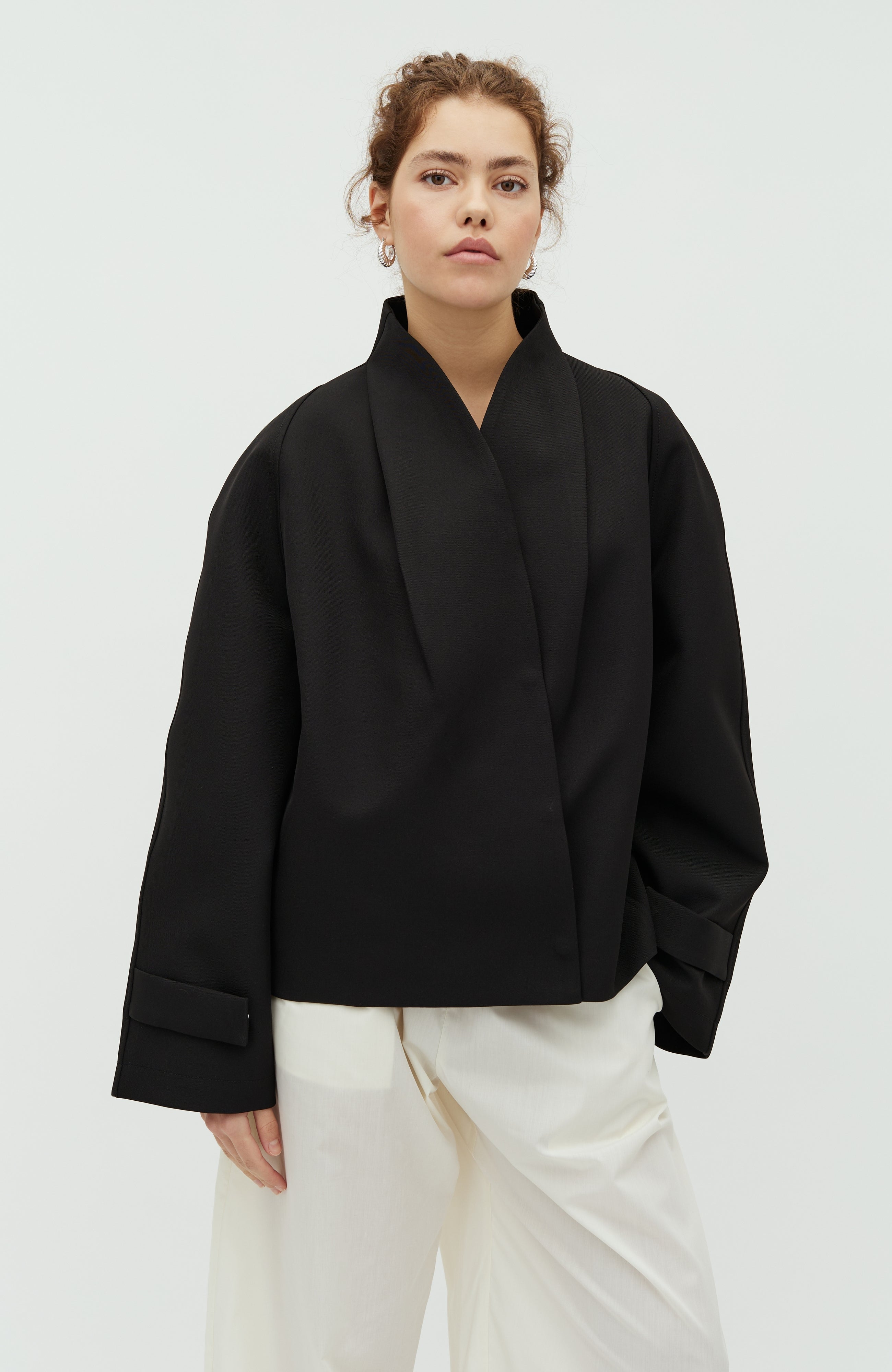 Übergroße Jacke mit Wickeldetail und hohem Kragen