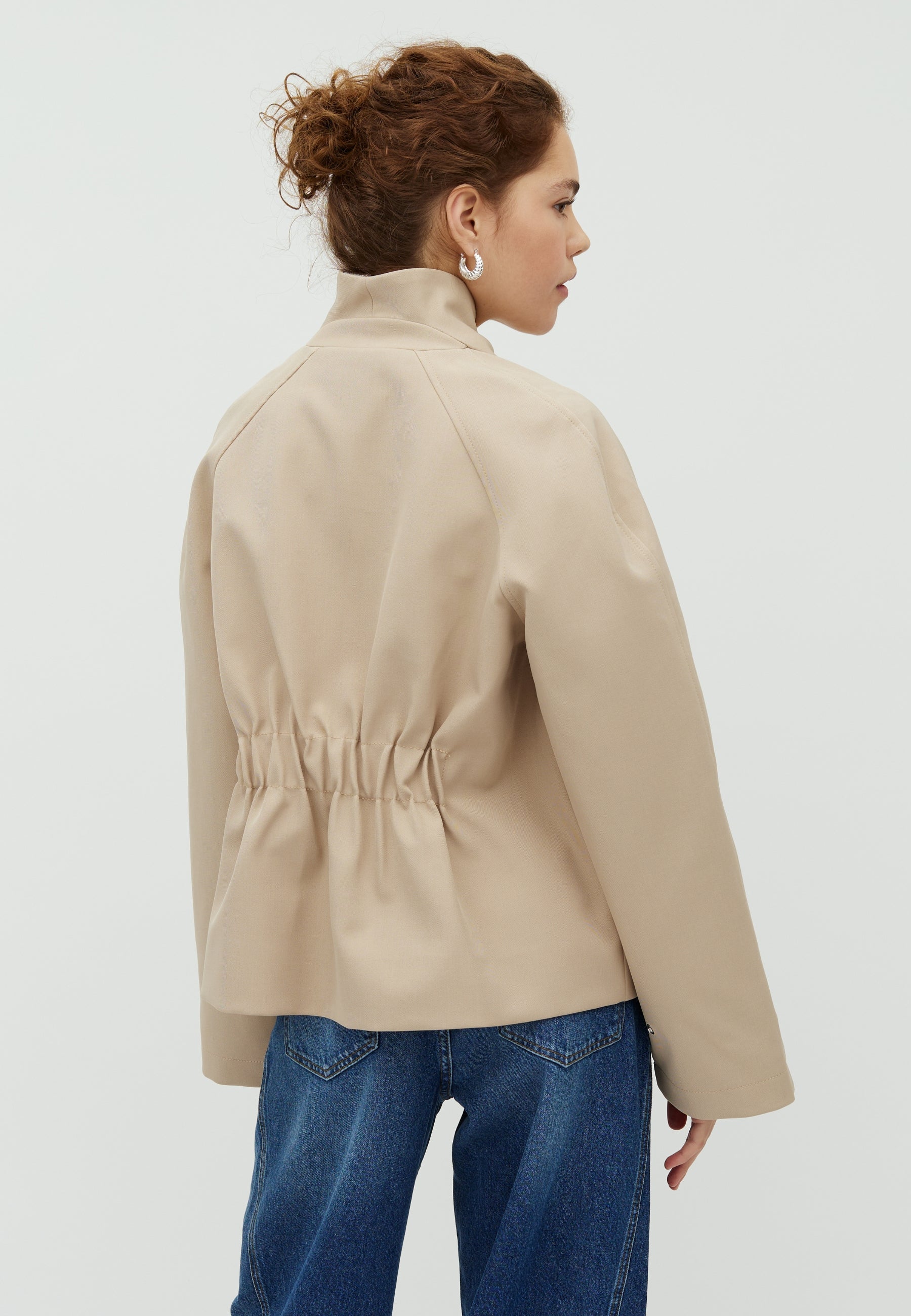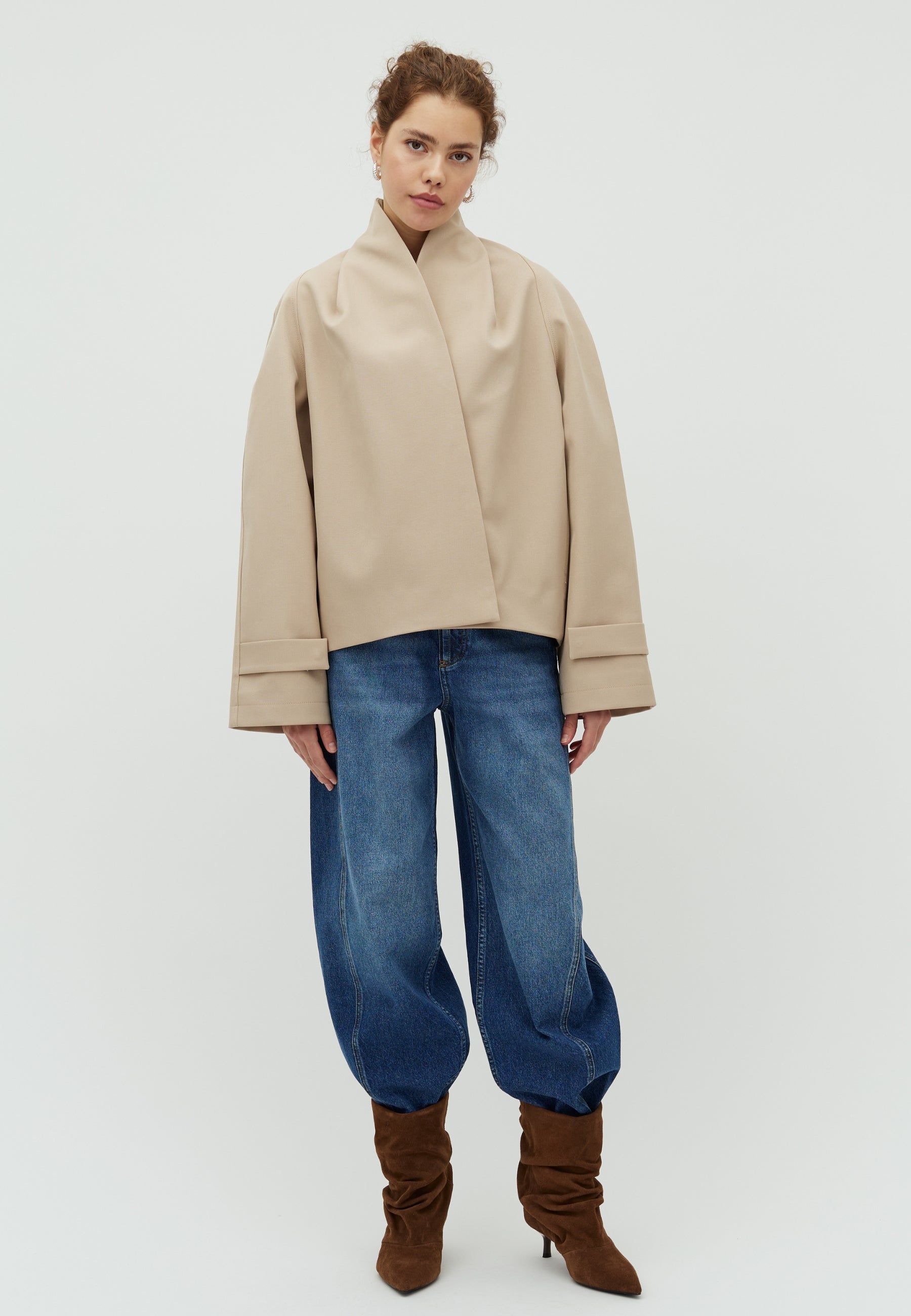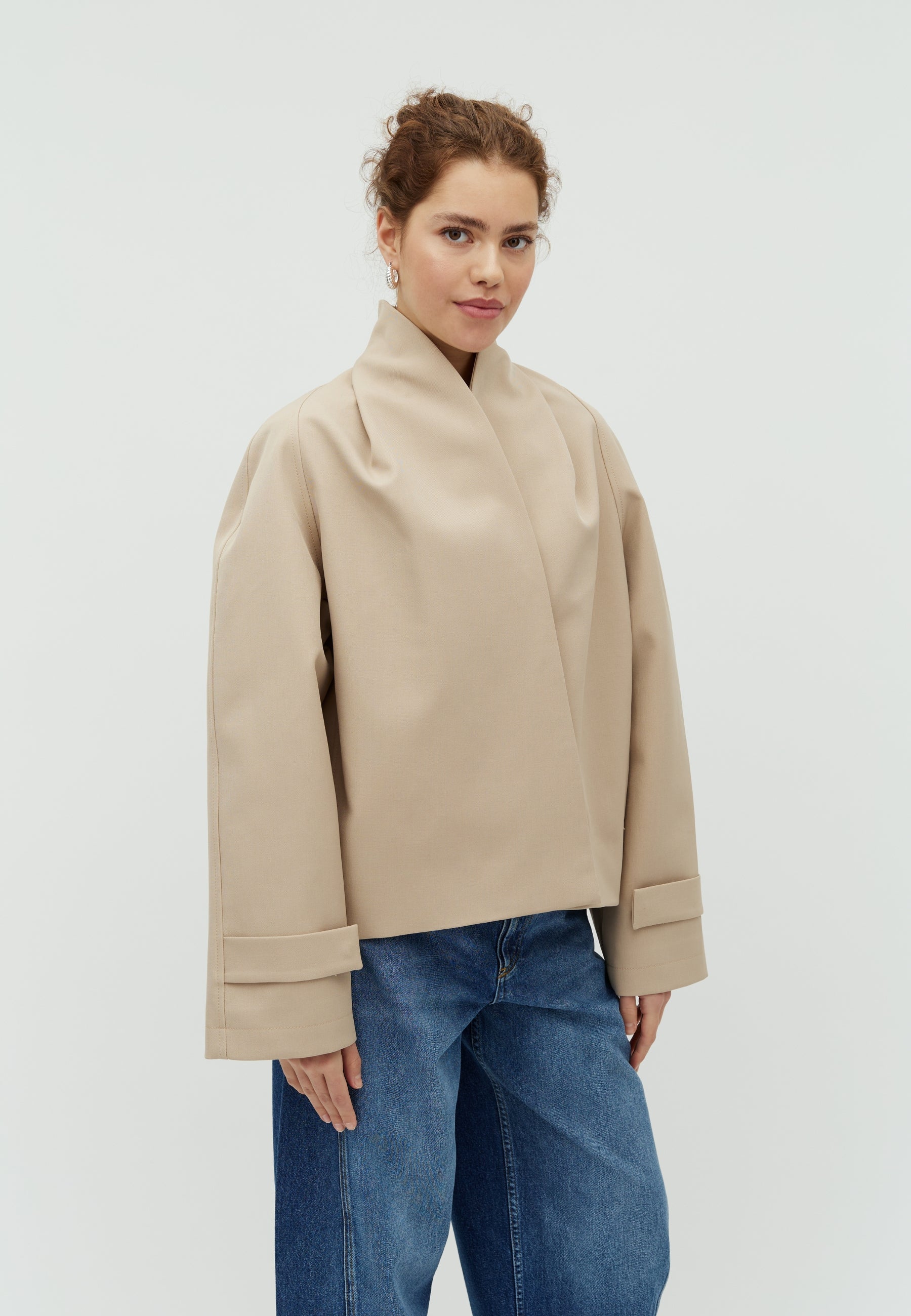 Übergroße Jacke mit Wickeldetail und hohem Kragen