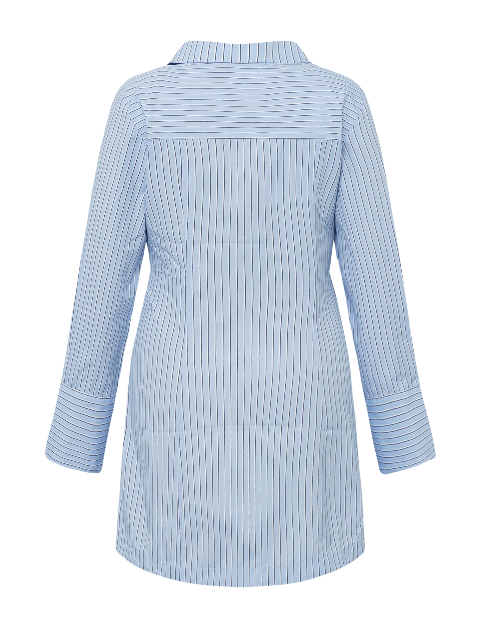 Kleid mit weiten Ärmeln und Wickeleffekt.