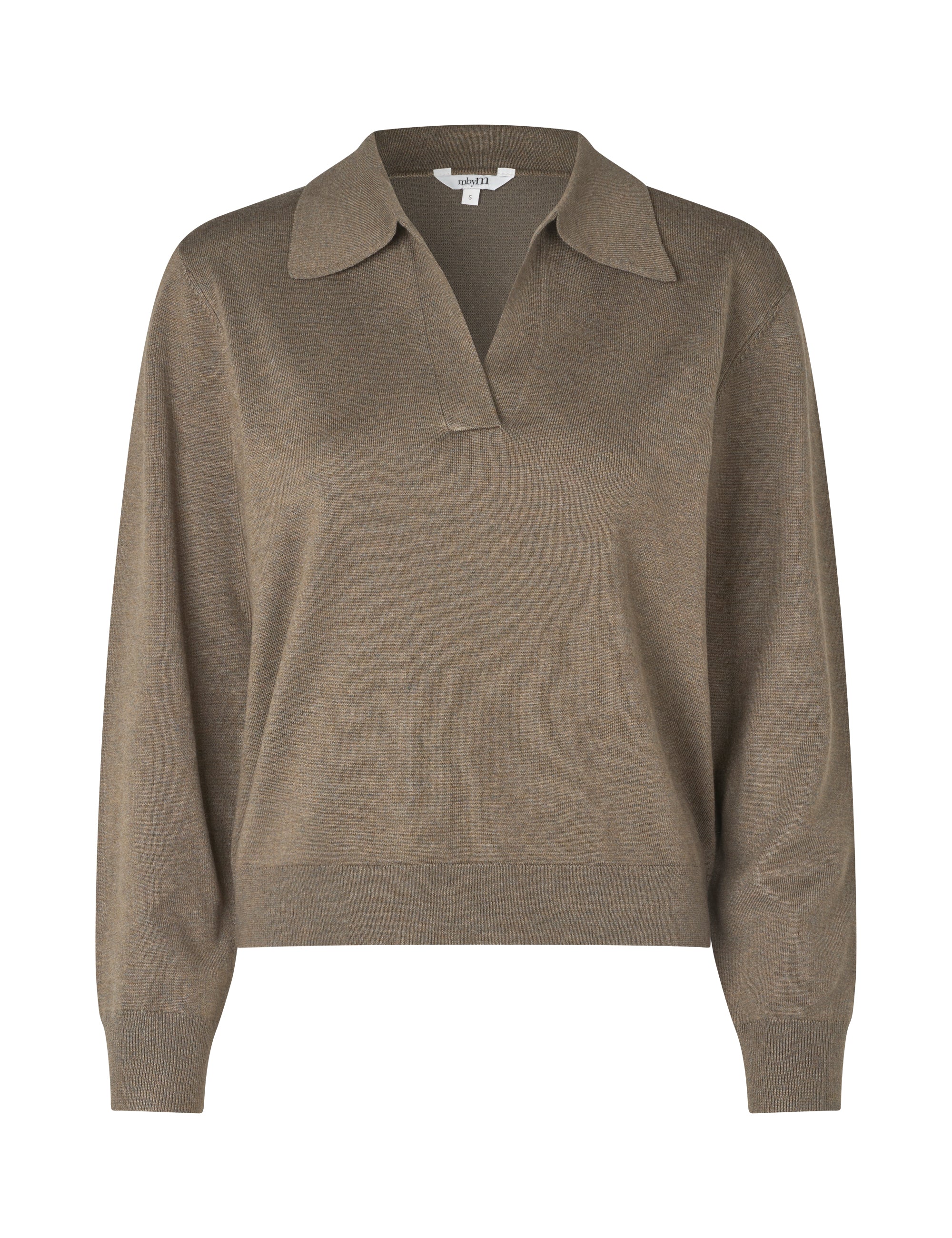 Sika-M Gestricktes Poloshirt - Dark Brown Melange