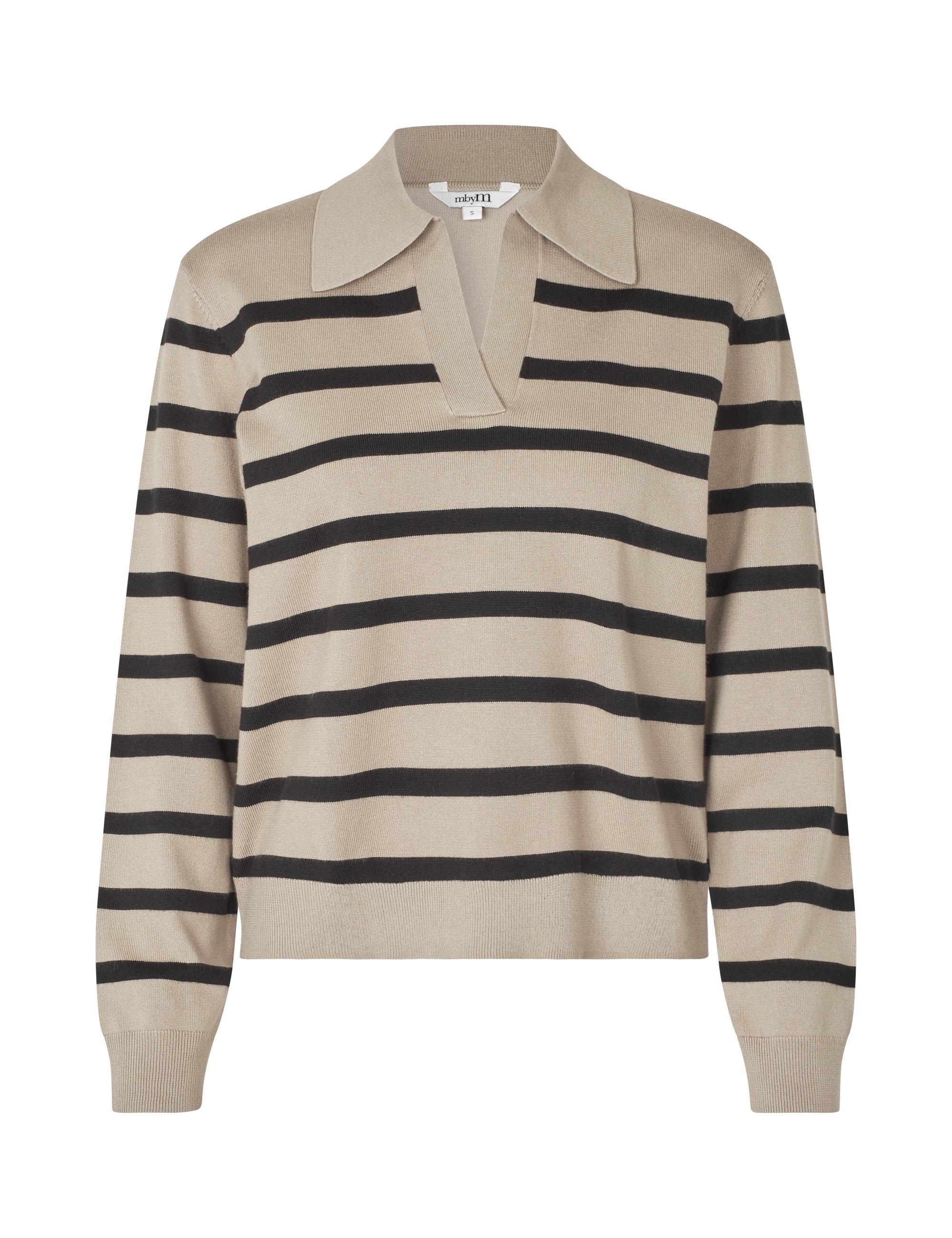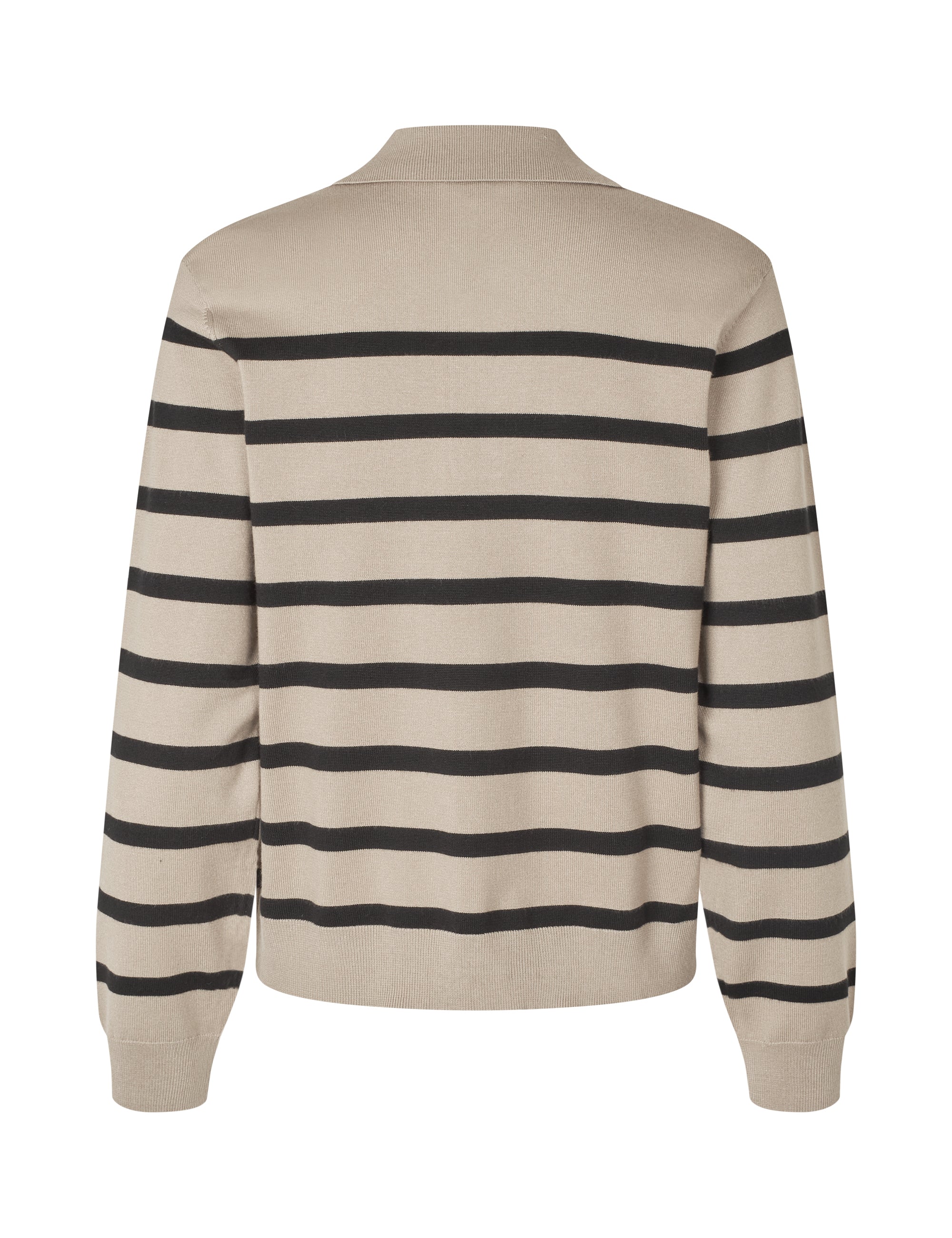 Sika-M Gestricktes Poloshirt - Oyster Black Stripe