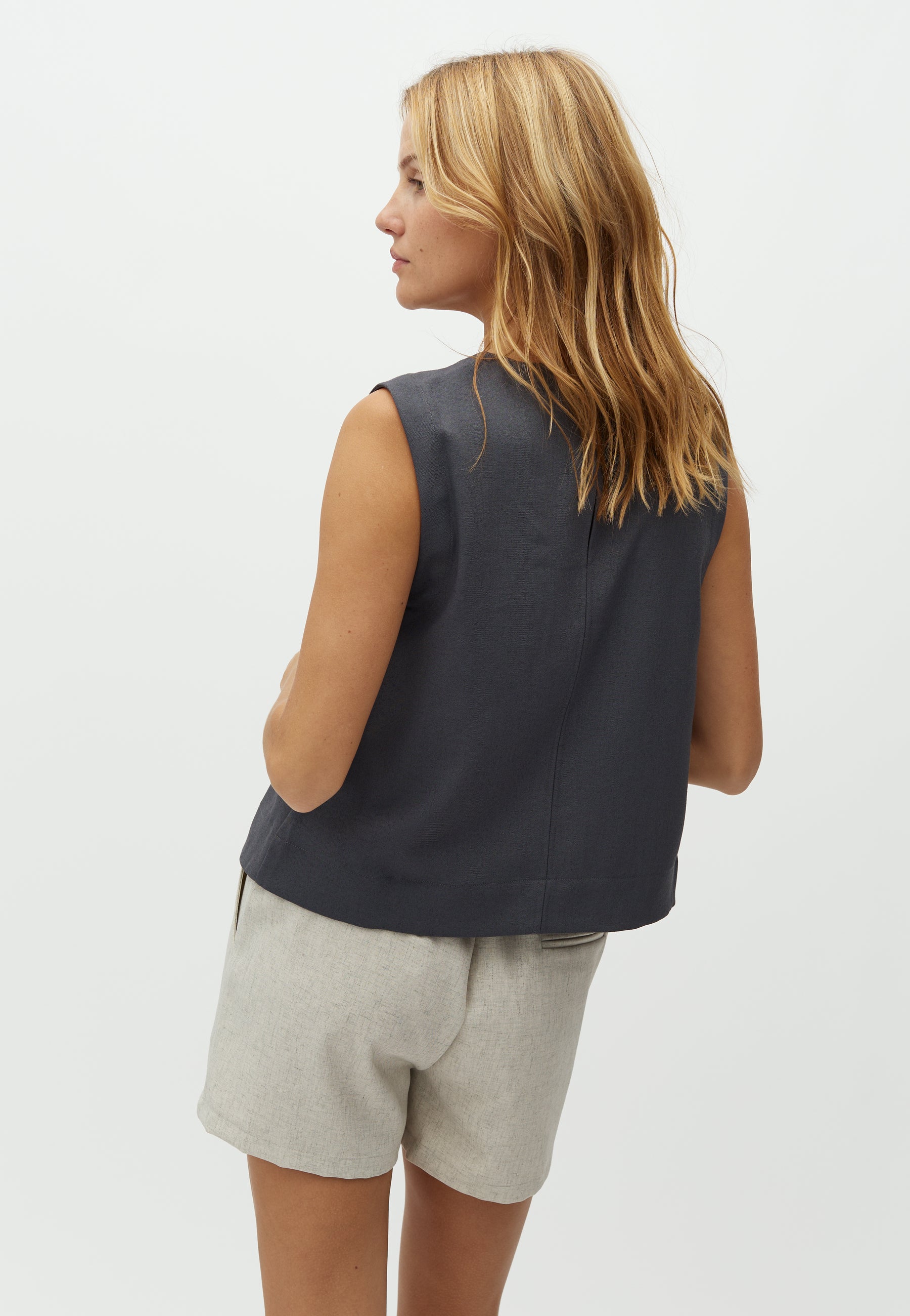- Kann mit nackten Armen oder über einem anderen Oberteil gestylt werden