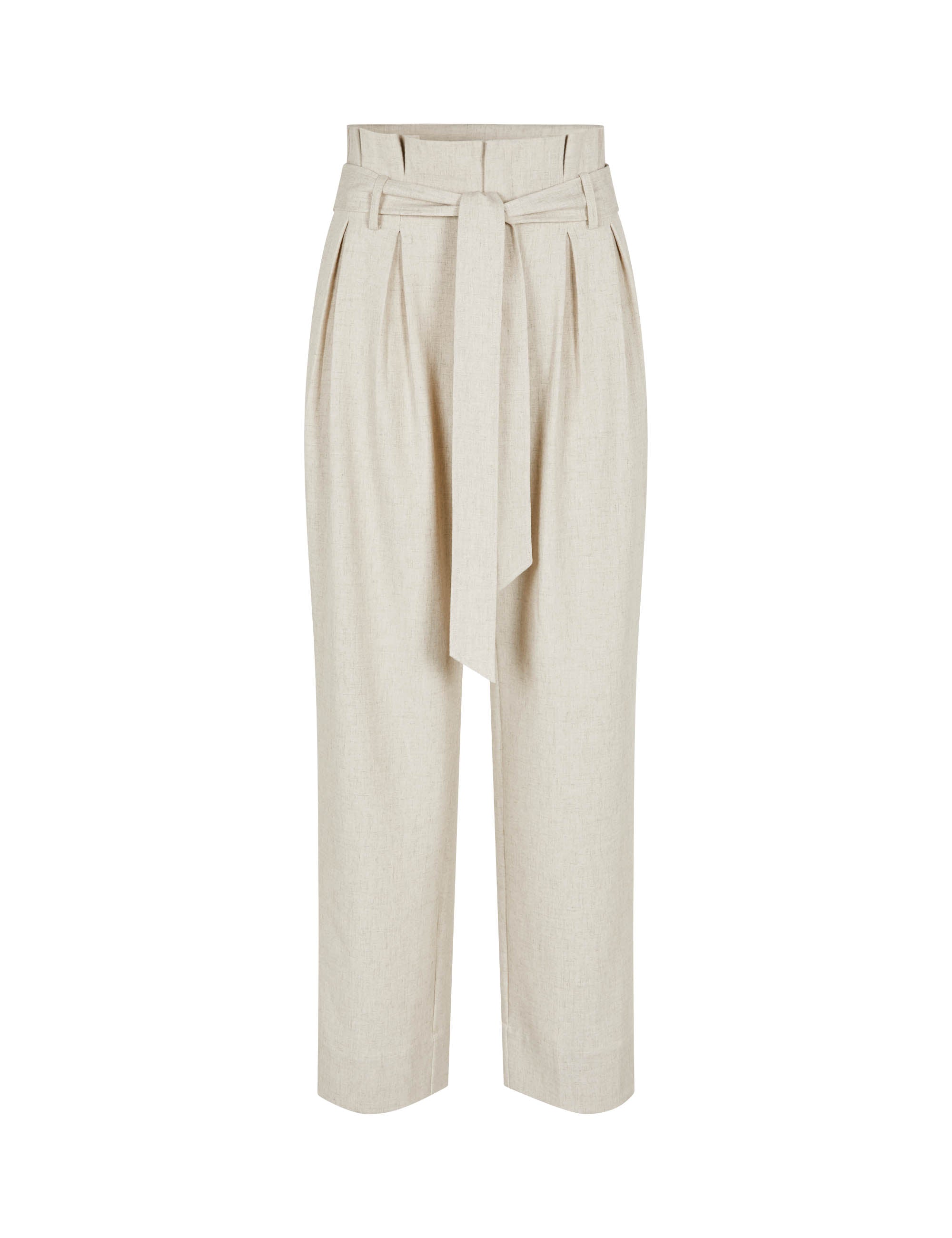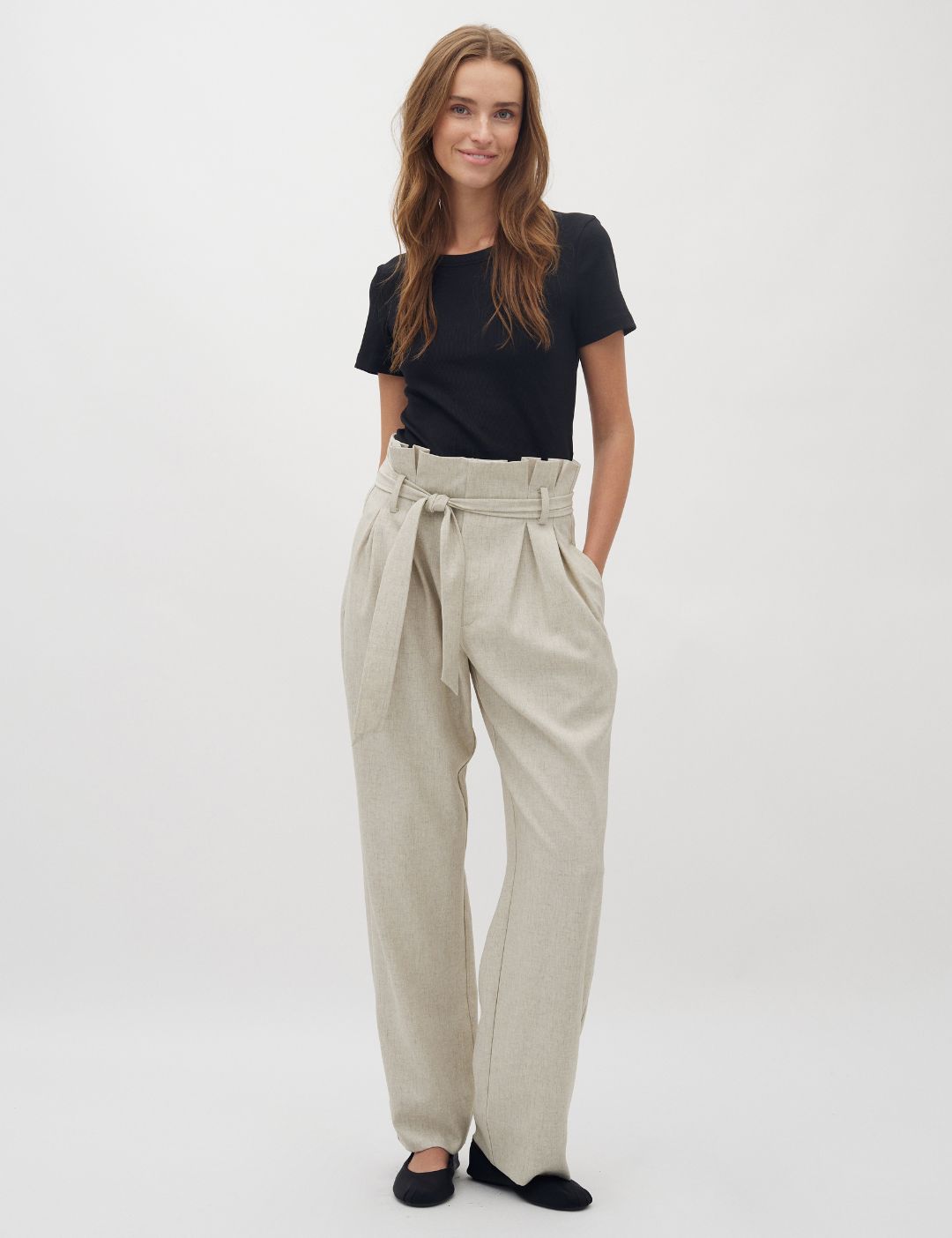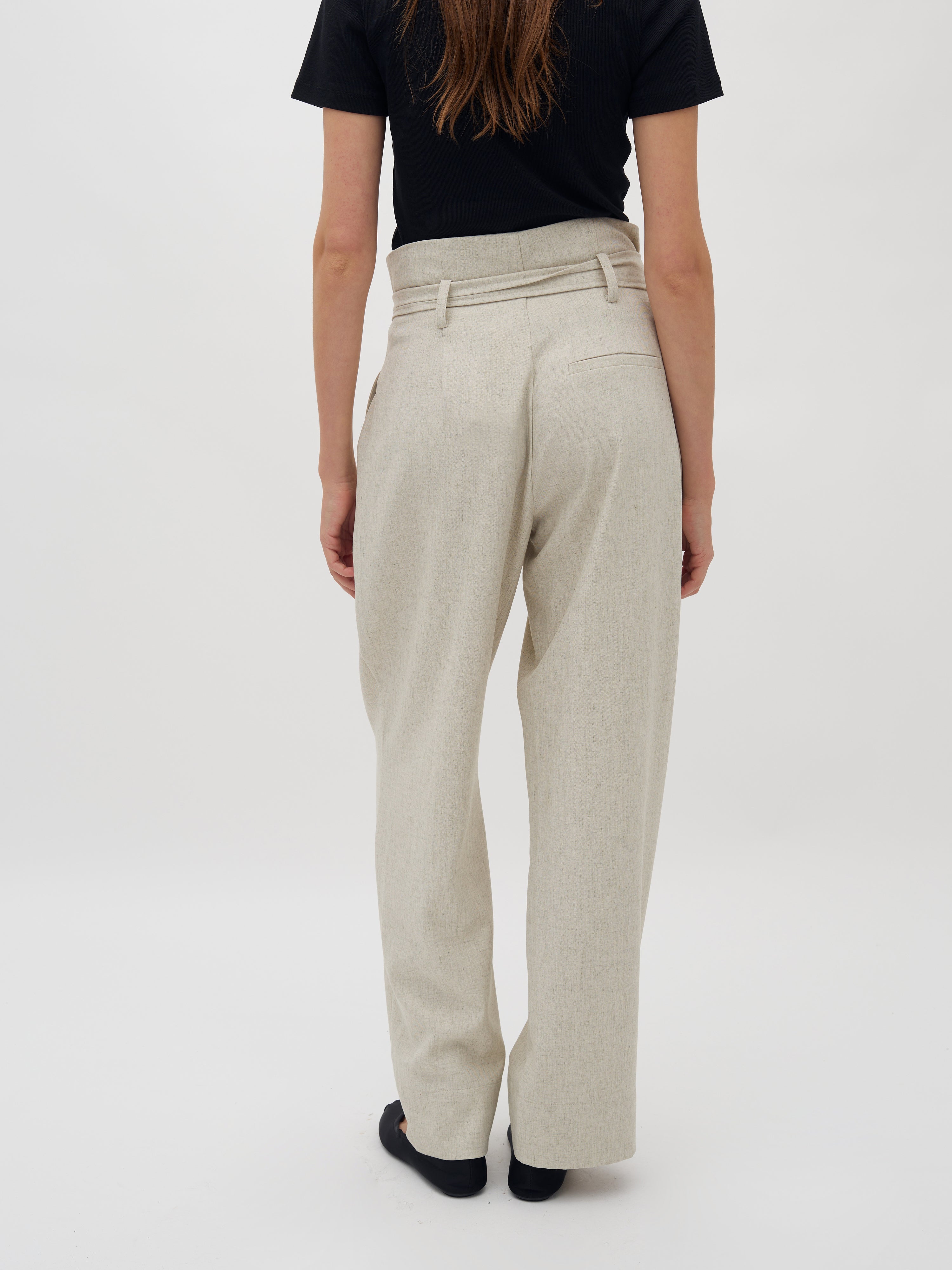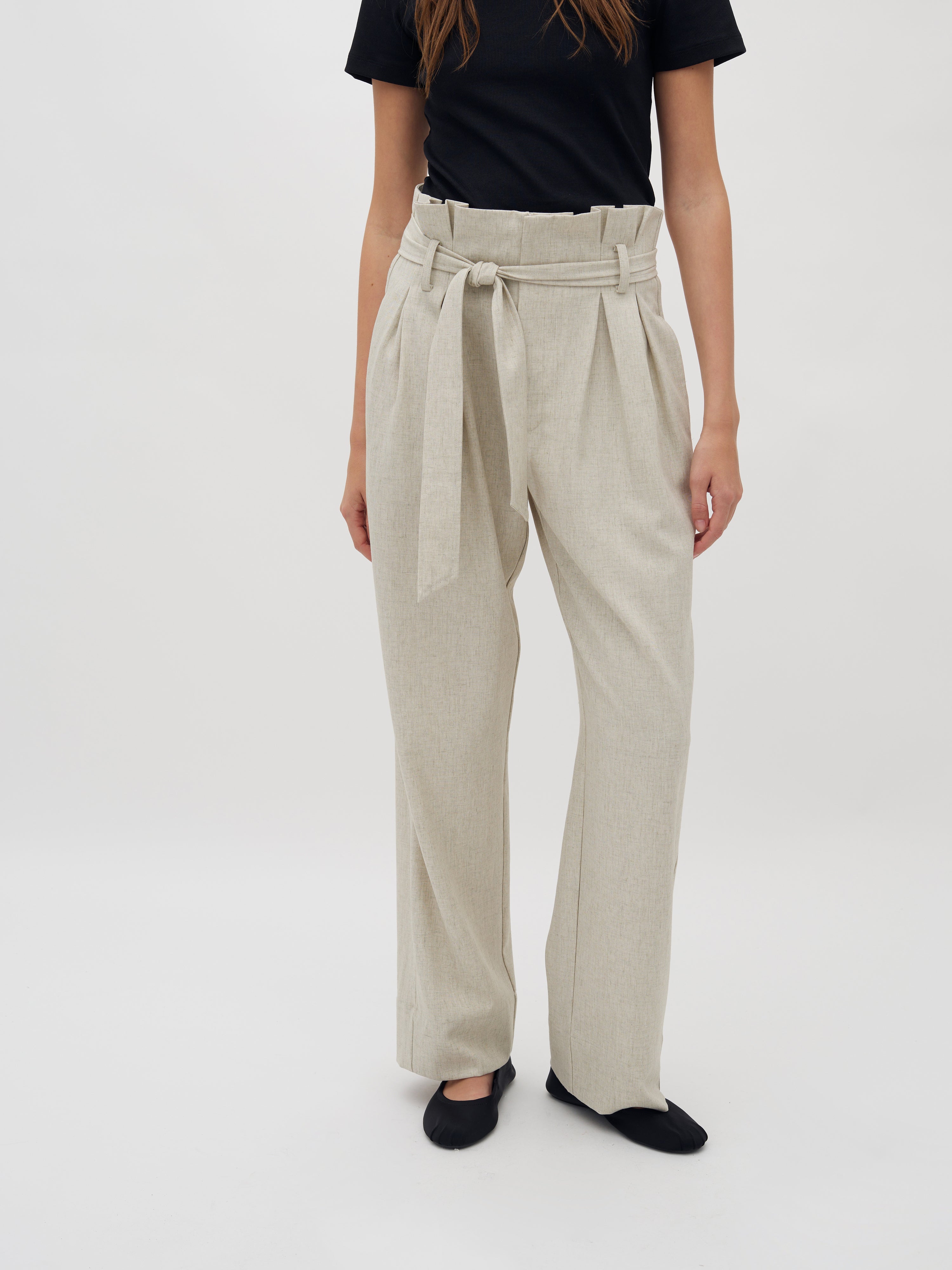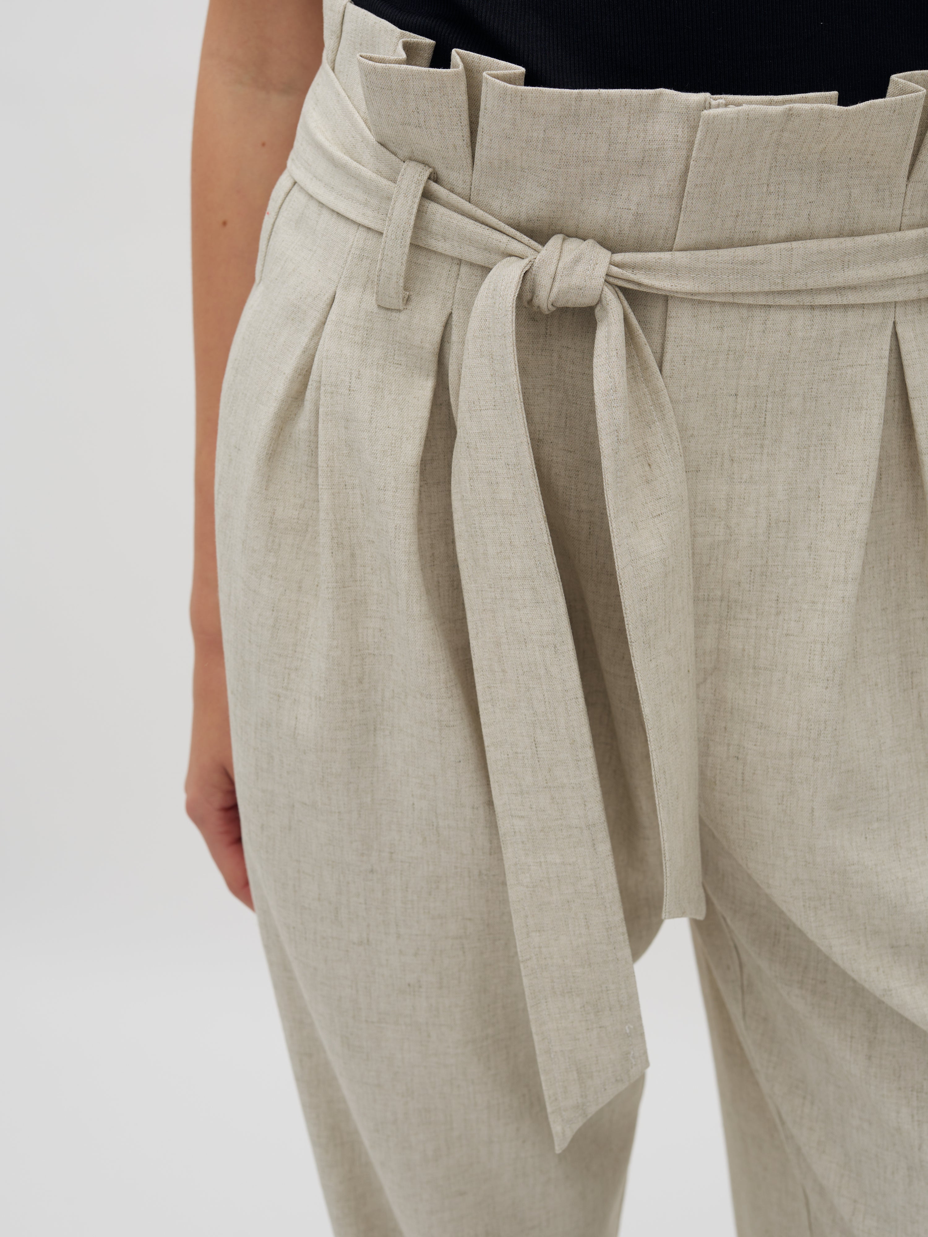 Hose mit Paperbag-Taille und Bindegürtel.